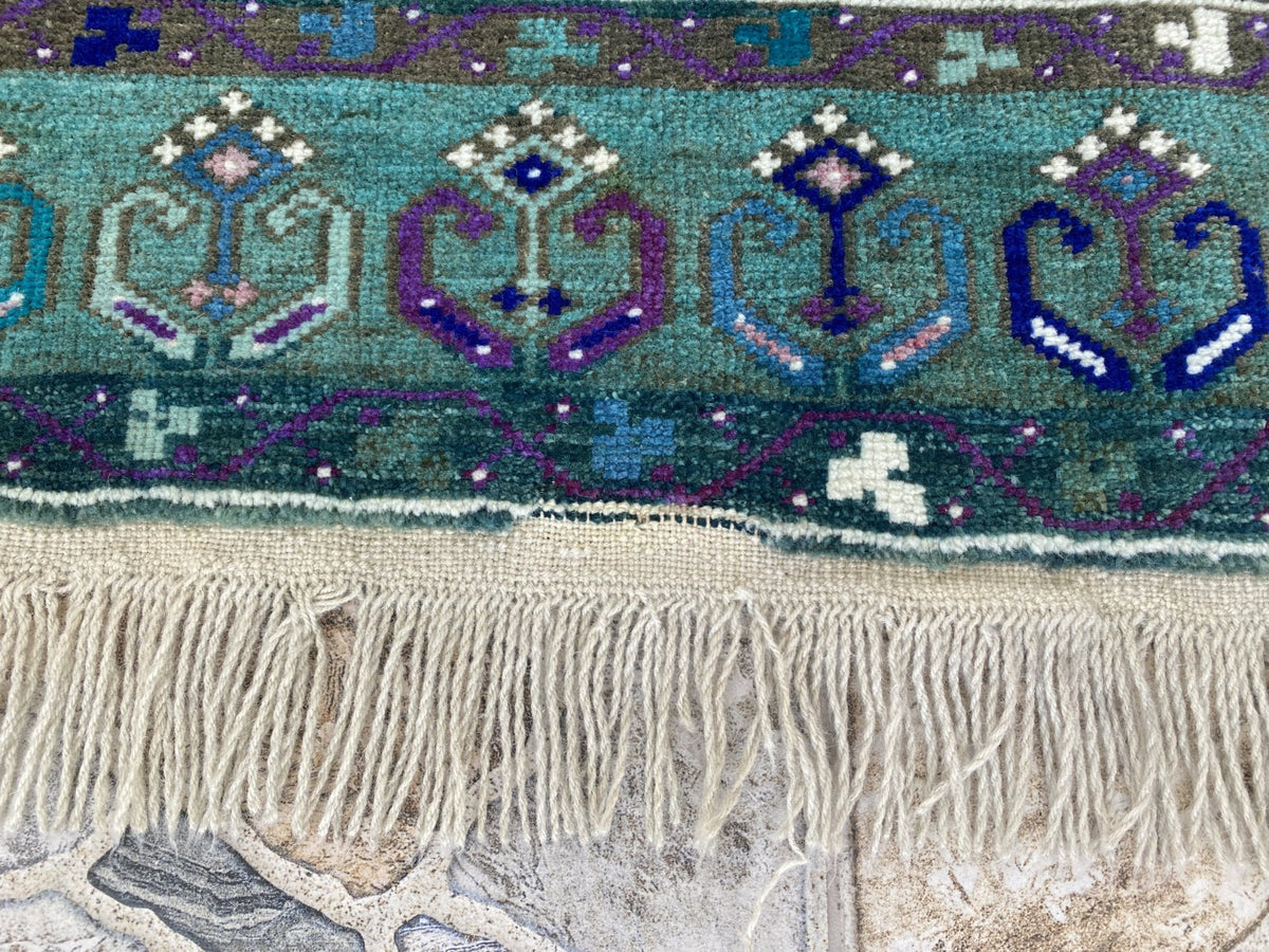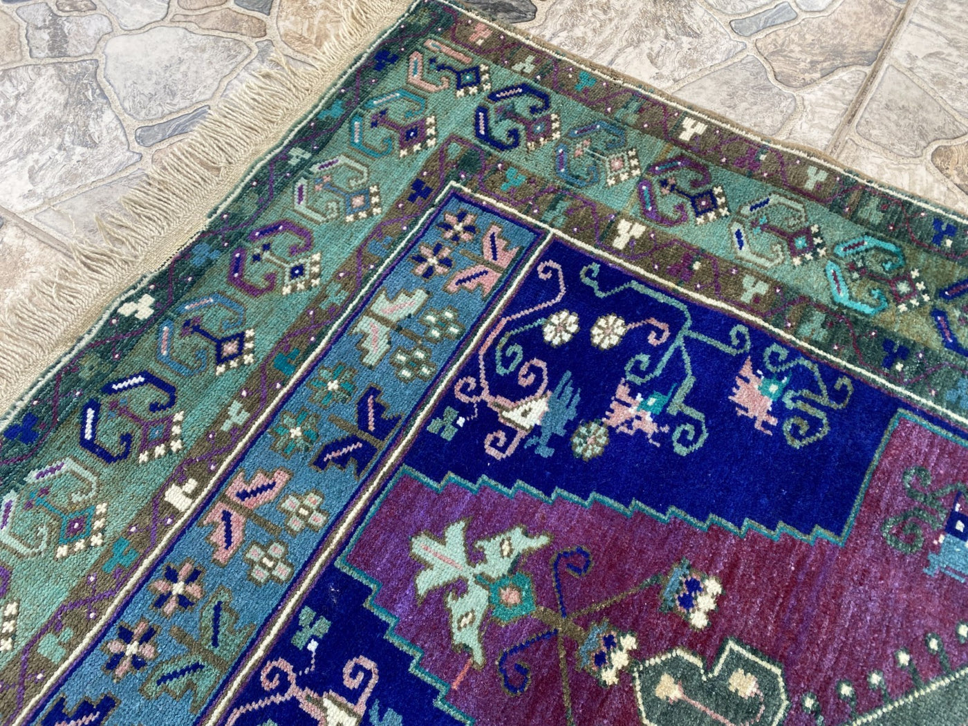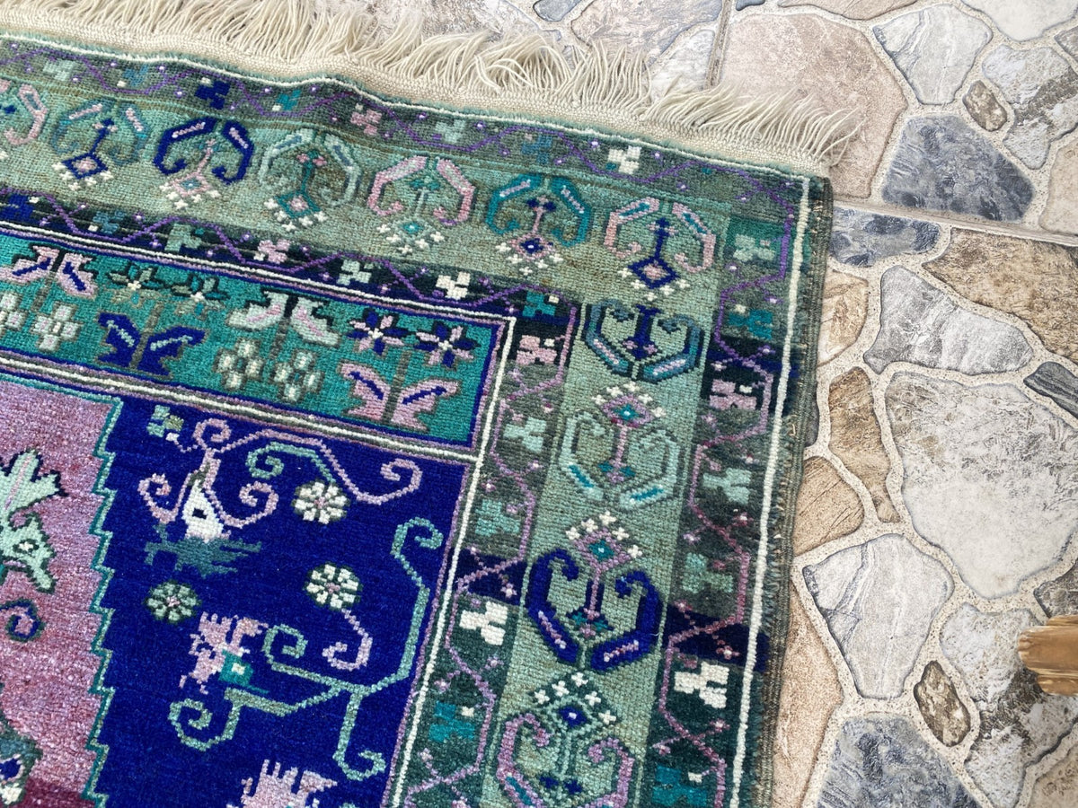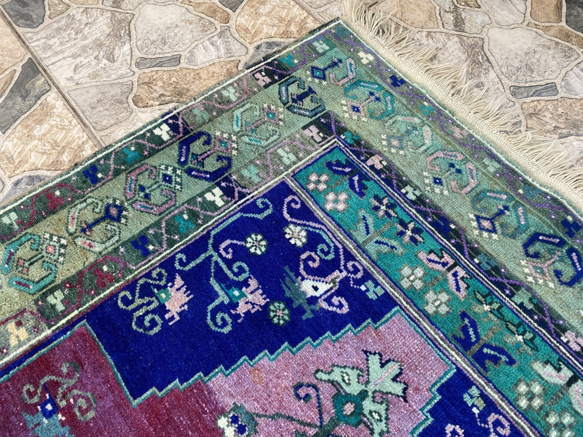 Keywords: Vintage rug, Handmade rug, Turkish rug, Wool rug, Medallion rug, Red rug, Blue rug, 3x6 ft rug, Oushak, Oriental.