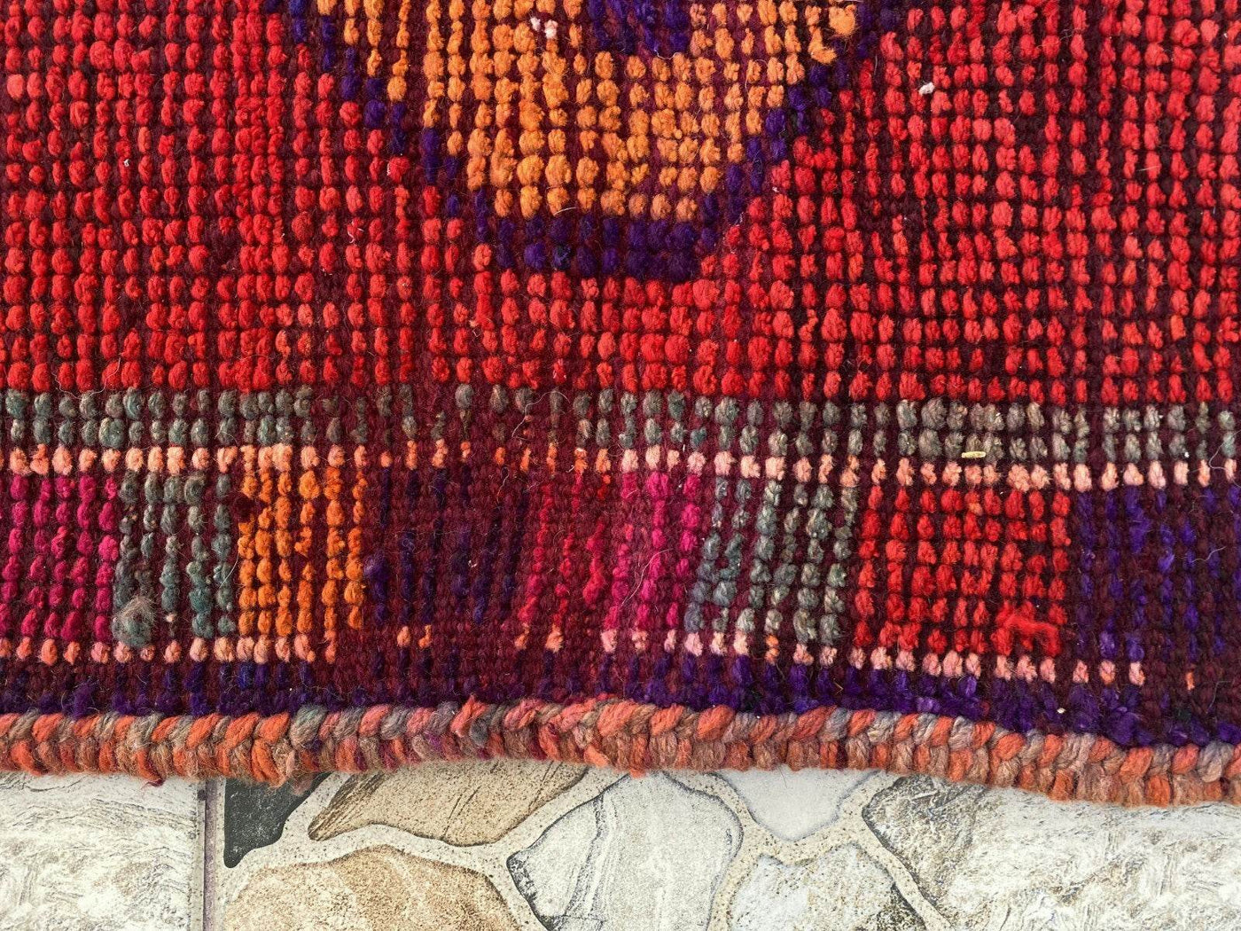 Color Palette: Dominated by bold reds, rich oranges, and earthy purples, the hues symbolize vitality, protection, and the natural beauty of the region where it was woven. The color palette makes this piece perfect for grounding neutral or minimal interiors while introducing a sense of warmth and personality.