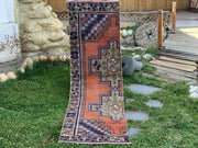 Unfurl a tapestry of time and tradition: This captivating 2x8ft vintage Turkish Oushak runner isn't just a floor covering; it's a journey through centuries of craftsmanship. Hand-knotted wool whispers tales of nomadic tribes, its intricate geometric patterns reflecting the timeless beauty of Anatolia.
