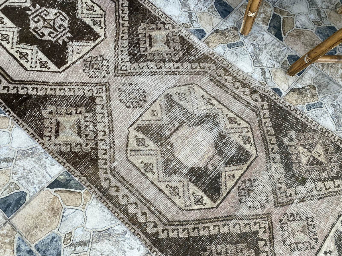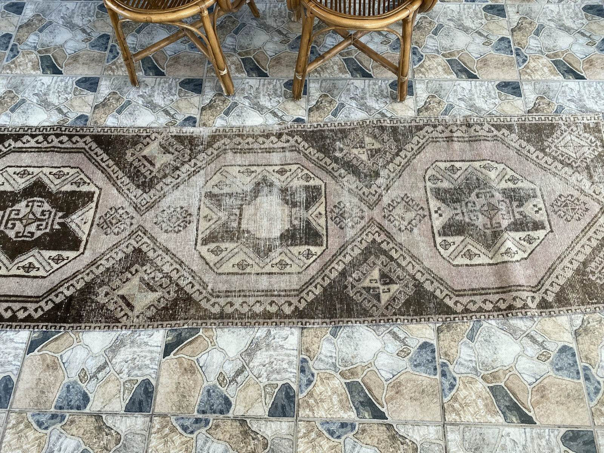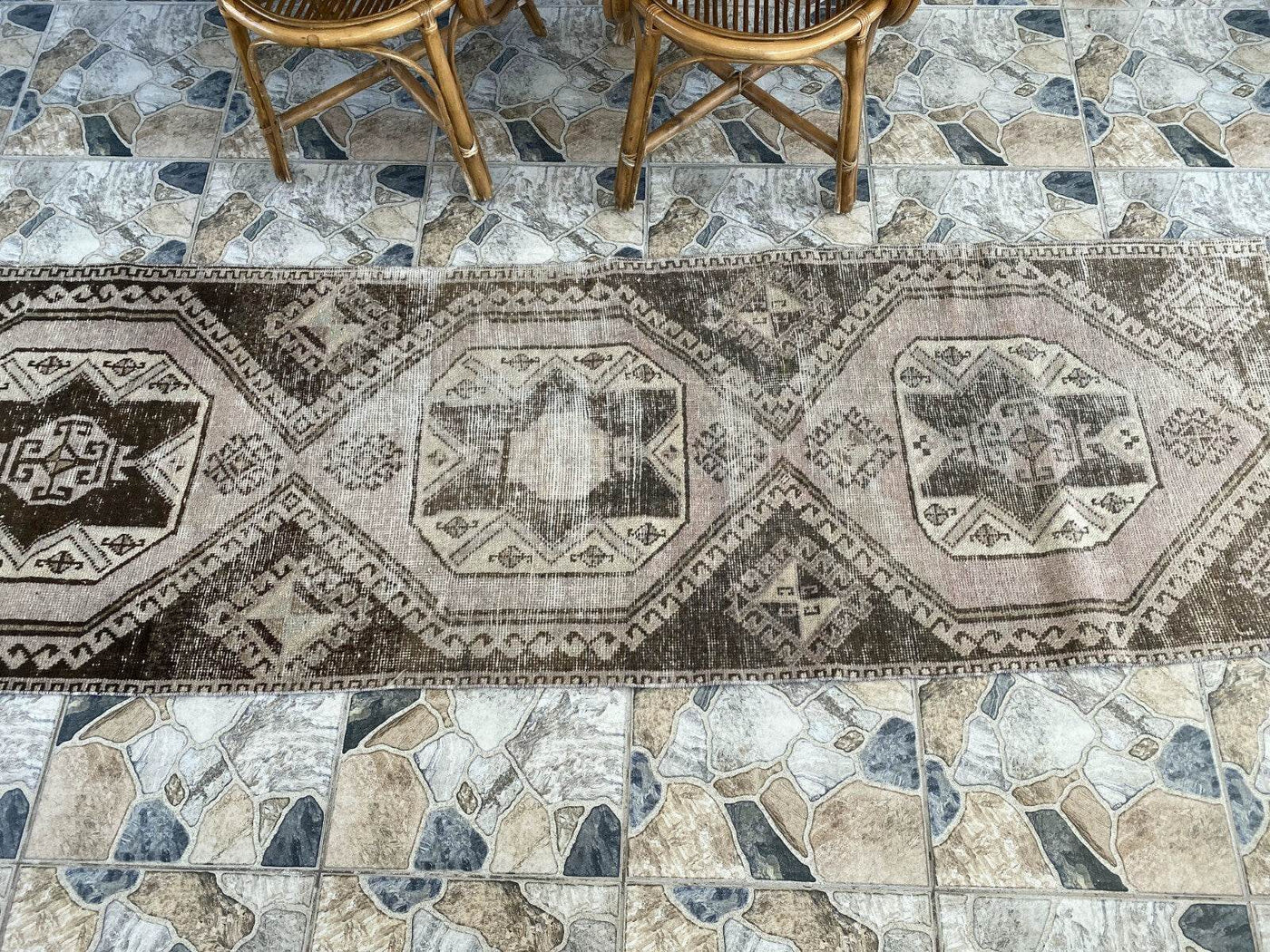 Bring authentic soul and timeless character into your space with this handmade vintage Kurdish runner rug, crafted by Anatolian artisans. Measuring 82x260 cm (2.6x8.5 ft), this long wool hallway rug is a perfect fit for corridors, kitchens, entryways, or narrow spaces. With its earthy brown, taupe, beige, and faded rose hues, it beautifully balances rustic warmth and tribal elegance.