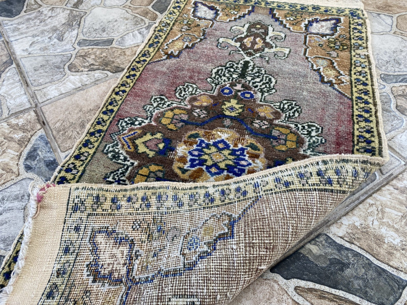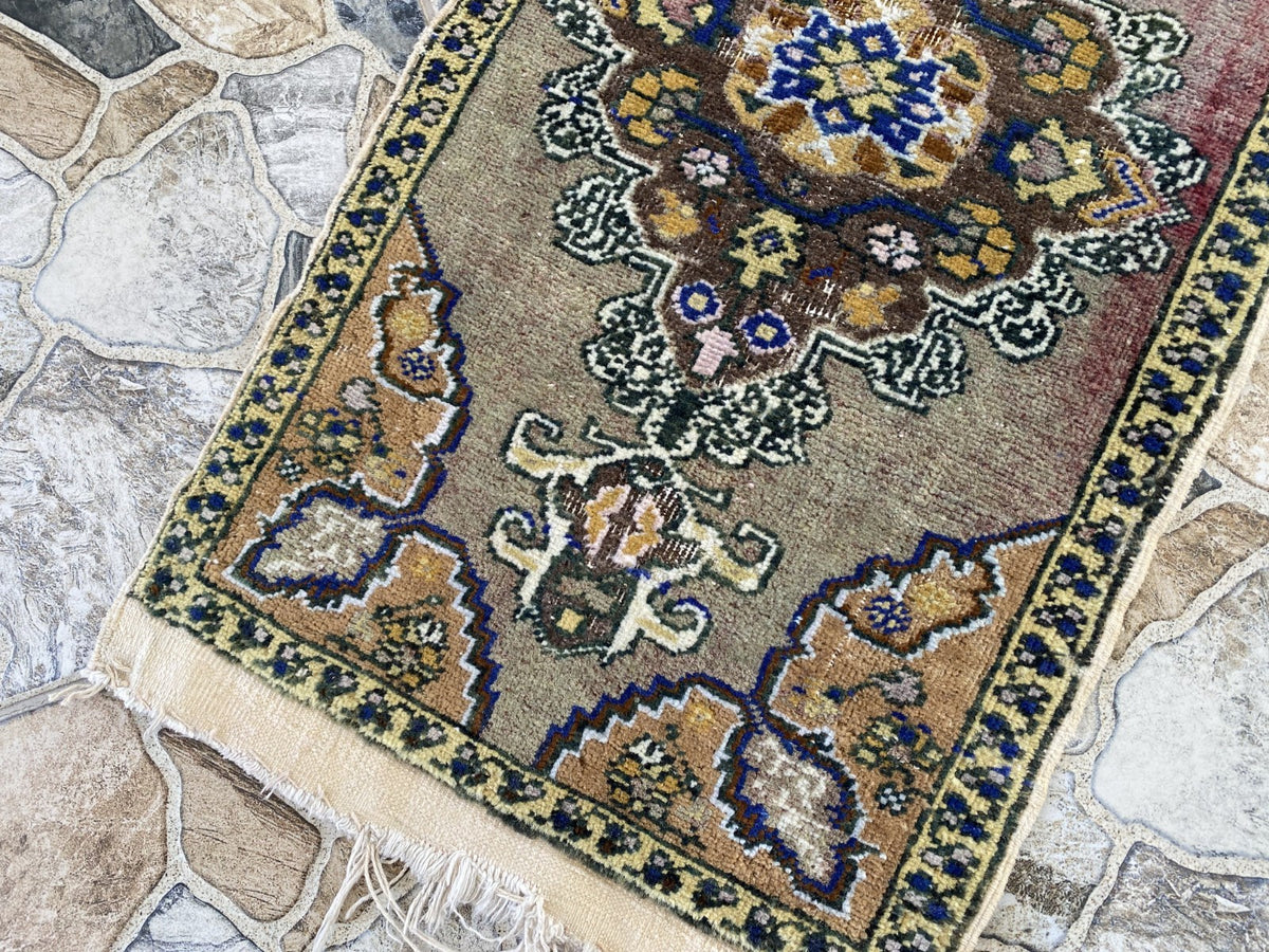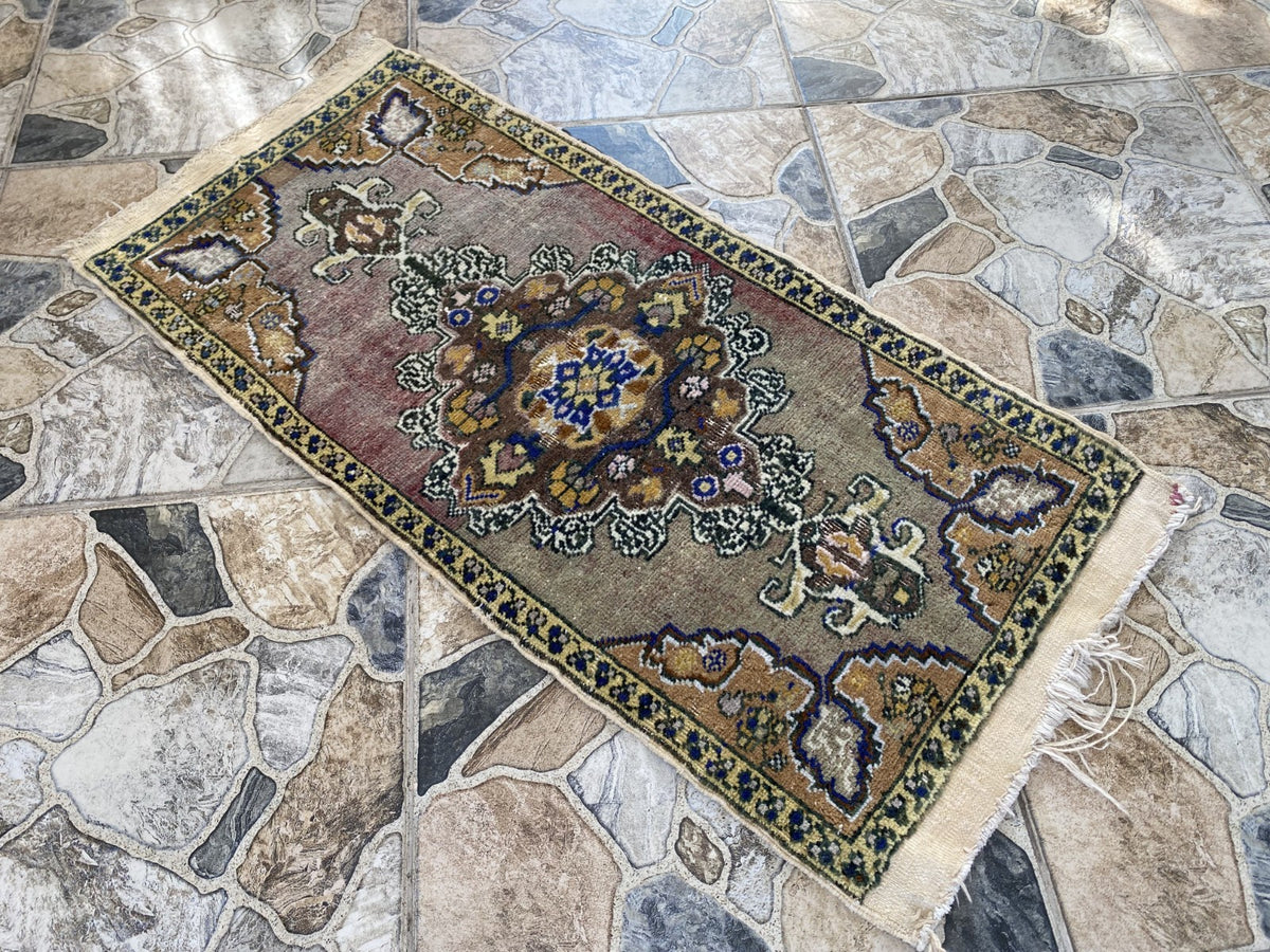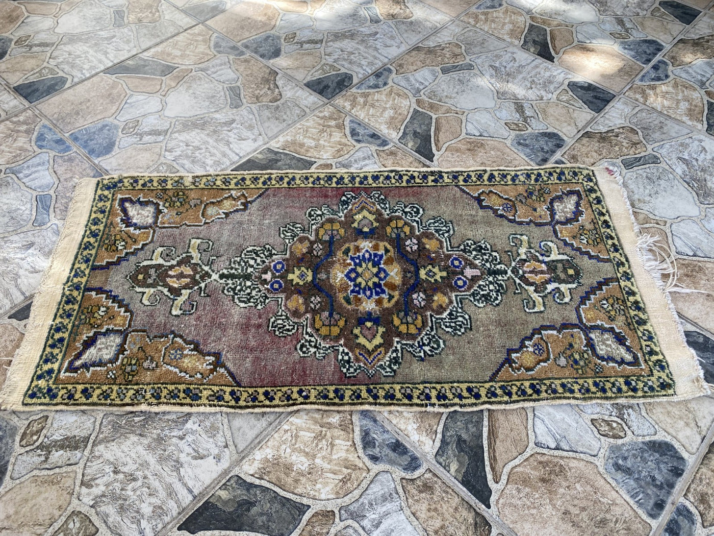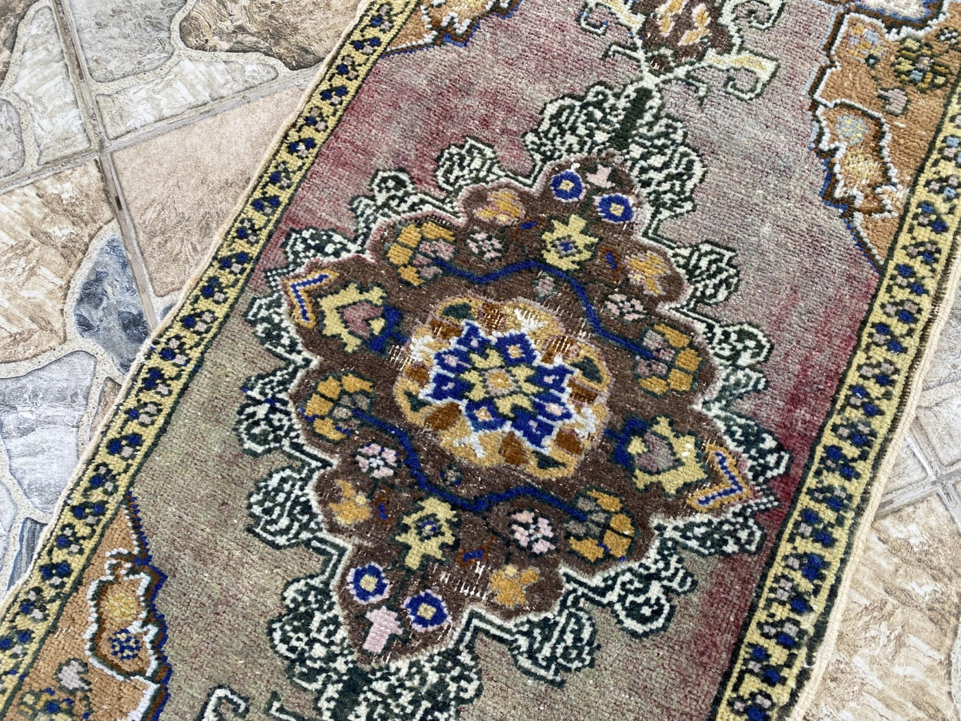 🔑 Tags / Keywords: Vintage Turkish rug, Small Anatolian rug, Hand-knotted wool, Tribal rug, Rustic farmhouse decor, Bohemian rug, Unique vintage, Accent rug, Small runner.
