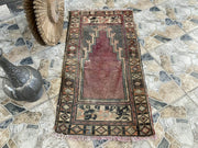 Turkish tribal rug, vintage Mihrab wool rug, handmade 1980s carpet, distressed Turkish prayer mat, boho farmhouse area rug, wool on cotton small rug, ethnic Anatolian rug, antique Turkish floor decor, nomadic wool rug