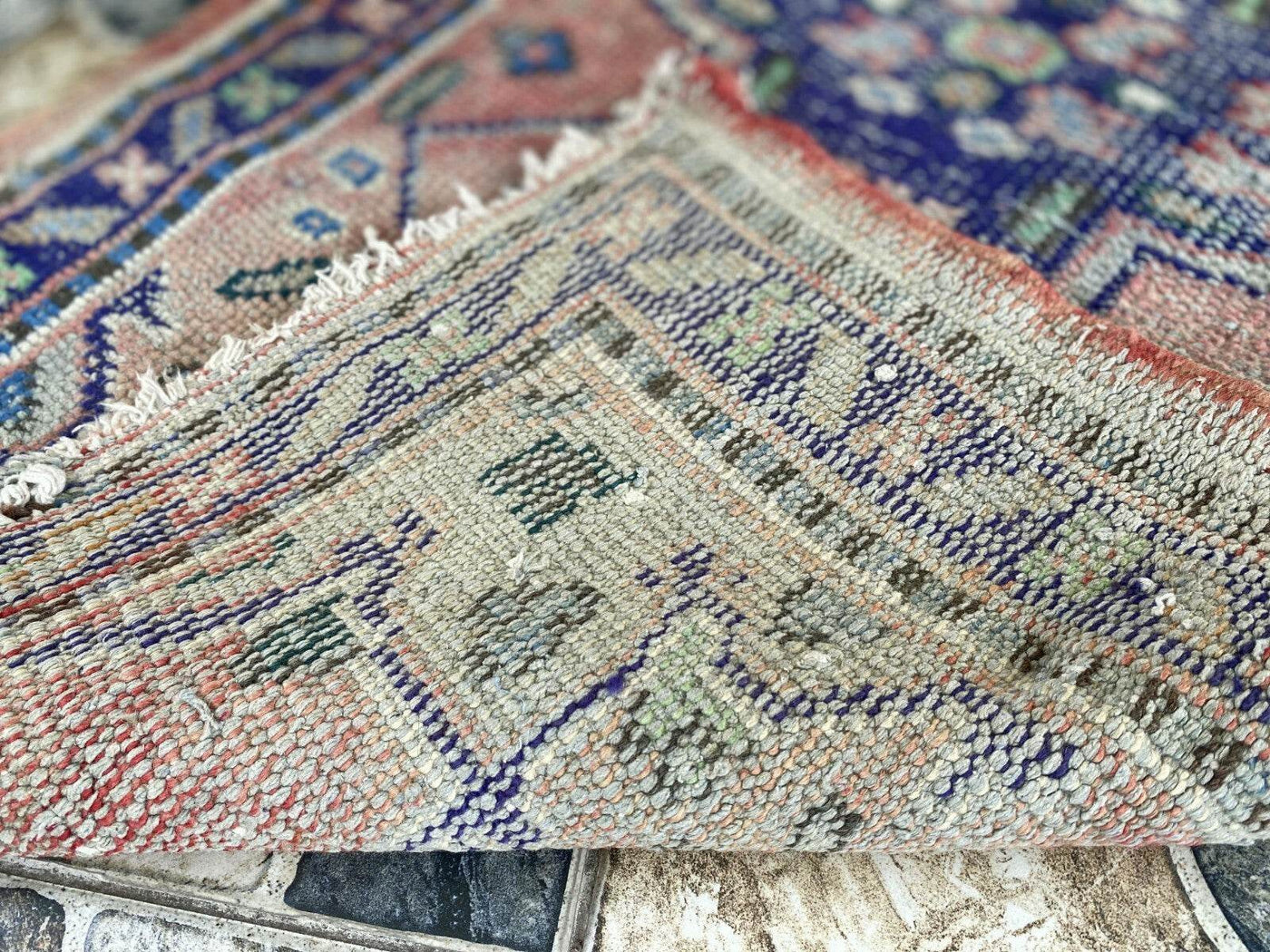 vintage runner rug, Anatolian carpet, hand-knotted wool, Turkish hallway rug, medallion design, coral blue carpet, Konya runner, Kayseri rug, geometric oriental rug, narrow runner, bohemian decor, antique Turkish carpet, collectible rug, handmade wool carpet