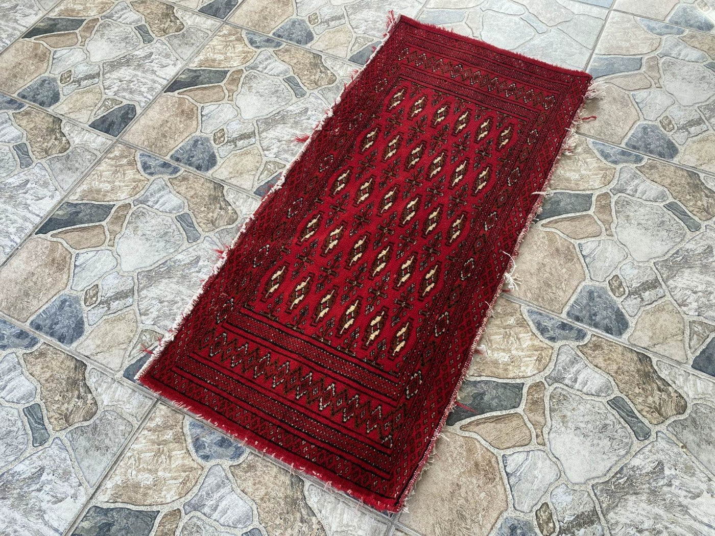 🧵 Vintage Afghan Bukhara Rug 📏 Measurements: Metric: 50 x 110 cm Inches: 19.69 x 43.31 in Feet (Decimal): 1.64...