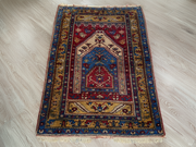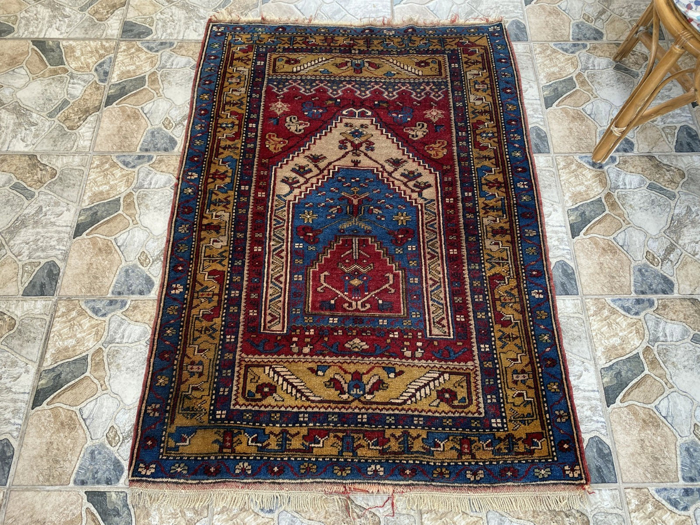 Keywords: Vintage rug, Hand-knotted rug, Turkish rug, Wool rug, Medallion rug, Red rug, Traditional rug, 3x5 rug.