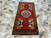 Bring home a piece of Anatolian history with this handmade vintage Turkish rug, a true example of traditional craftsmanship and timeless design. This antique wool rug, handmade in the heart of Middle Anatolia, Turkey, is a compact yet striking piece that adds warmth and authenticity to any interior. Its vivid colors, detailed motifs, and symbolic patterns reflect the rich Turkish weaving heritage.