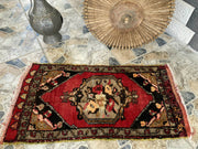 Turkish floral rug, vintage Anatolian carpet, small Turkish mat, bohemian wool rug, handmade 1960s rug, oriental decor, Sivas rug, niğde tribal rug, rustic mini carpet, eco-friendly wool rug, Turkish hallway runner