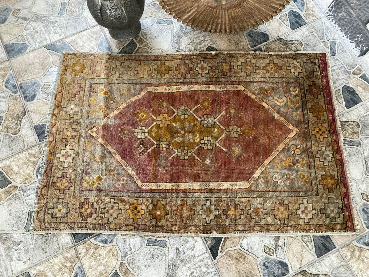 Vintage Turkish Anatolian Rug | 2.6 x 4 ft | Hand-Knotted Wool Rustic – Oushak Loom - Vintage Turkish Rugs