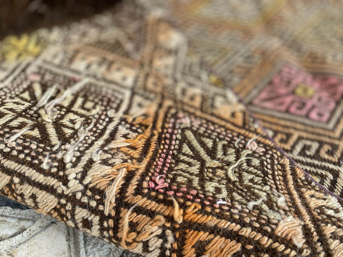 Regularly vacuum your handmade vintage rug and keep it out of direct sunlight. For spills, gently blot with a damp cloth; avoid harsh chemicals and machine washing. Professional cleaning is recommended.