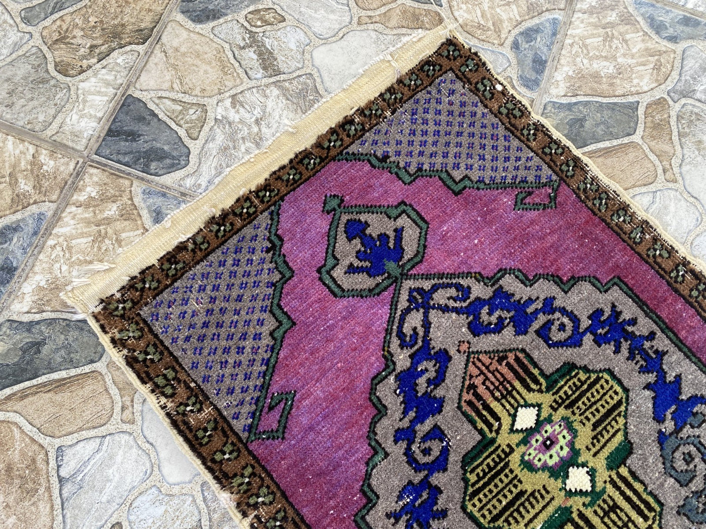 🔑 Keywords: Vintage rug, Handmade rug, Turkish rug, Wool rug, Tribal, Medallion, Purple rug, Anatolian, Small carpet