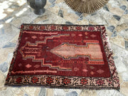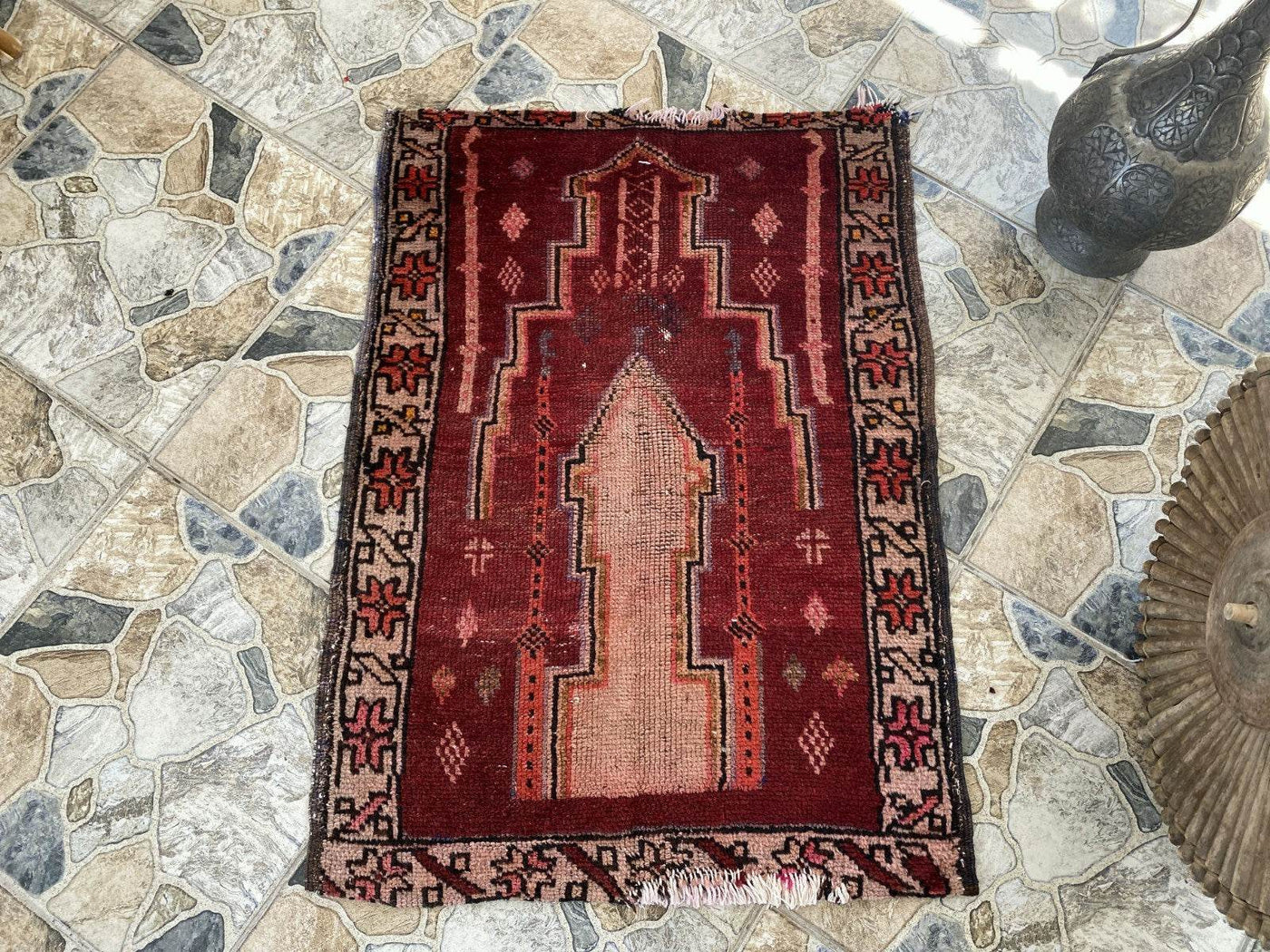 Distressed 2x3 ft Anatolian Rug | Vintage Authentic Hand-Knotted Wool Prayer Rug