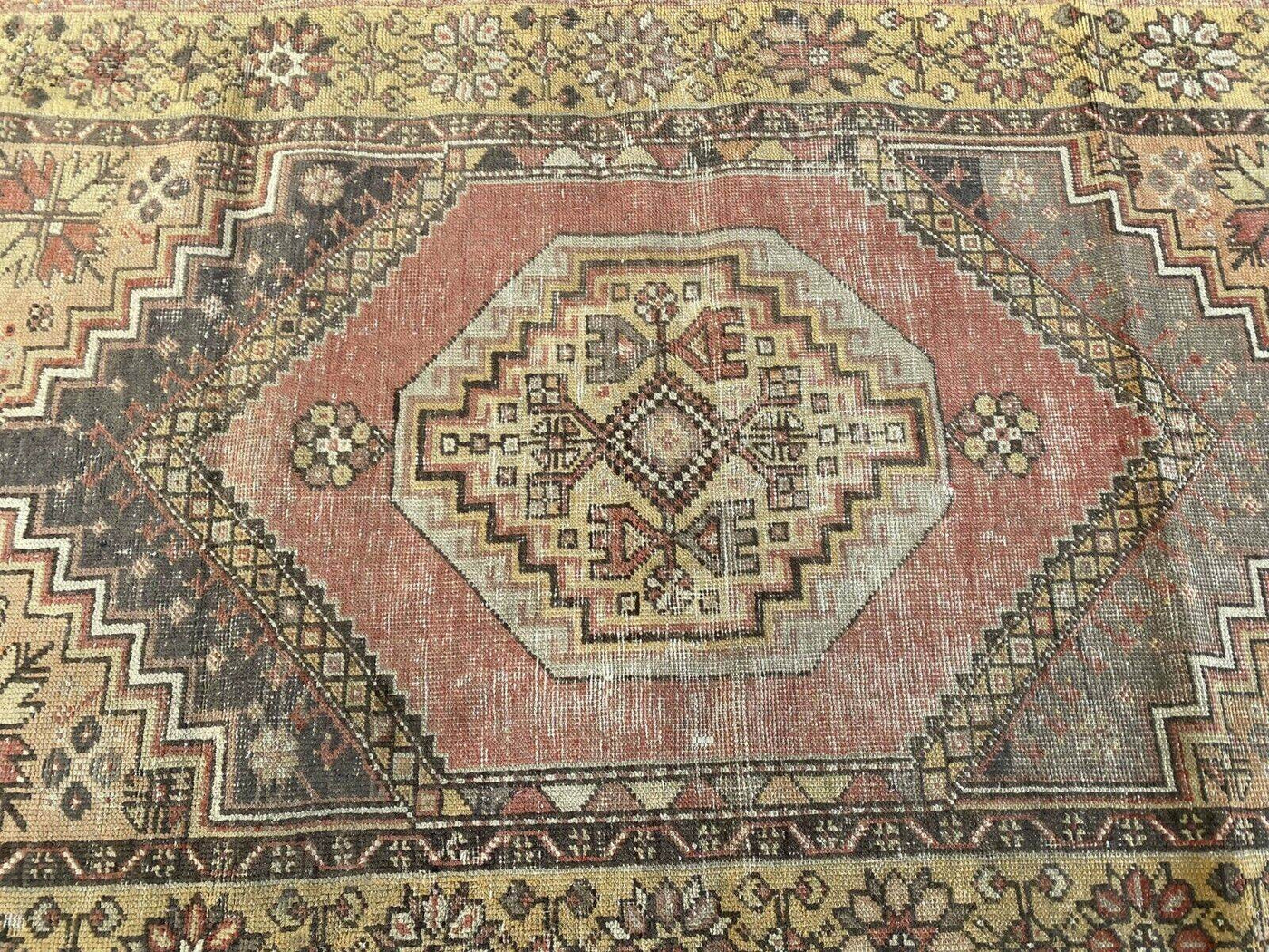 Geometric Vintage Turkish Rug, Hand-Knotted Farmhouse Anatolian Rug 3. – Oushak Loom - Vintage Turkish Rugs