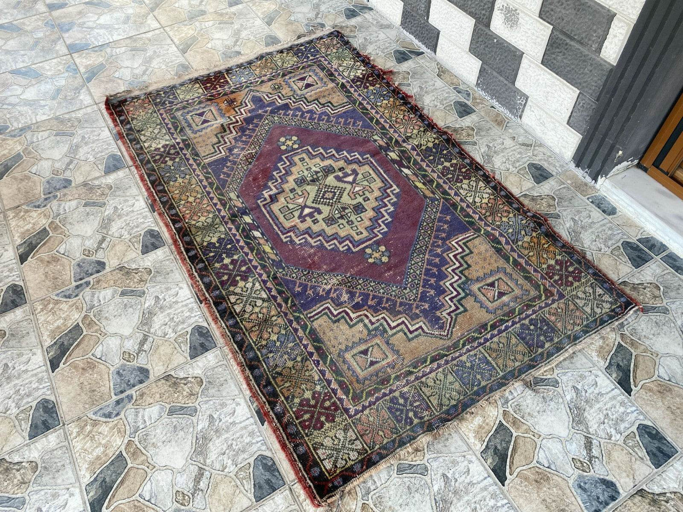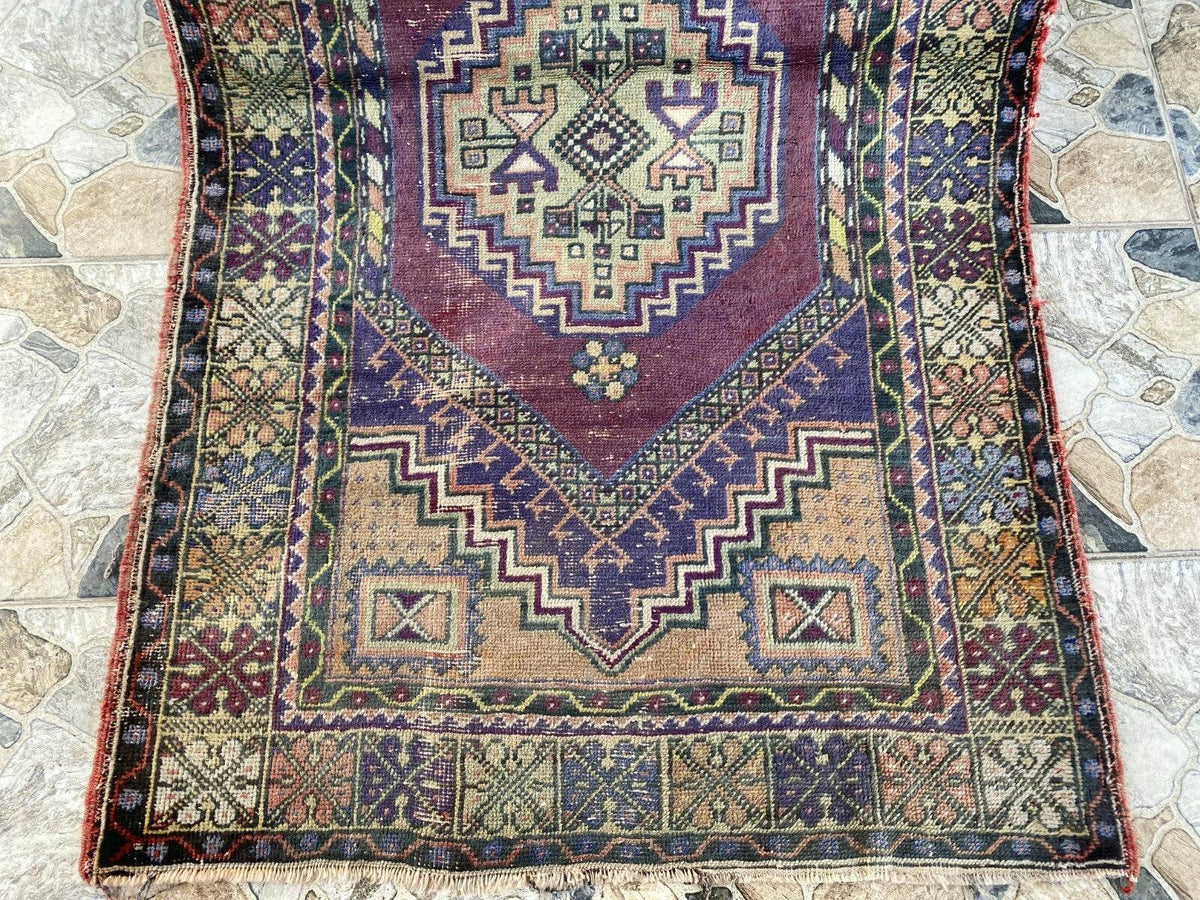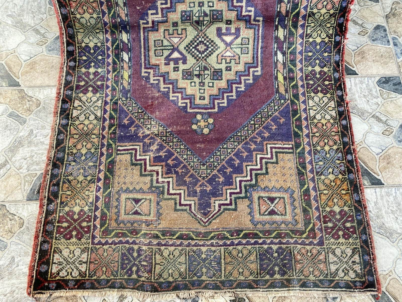 This vintage Turkish rug is in excellent condition for its age, with slight, natural wear that adds to its authenticity. Professionally cleaned and ready for use.