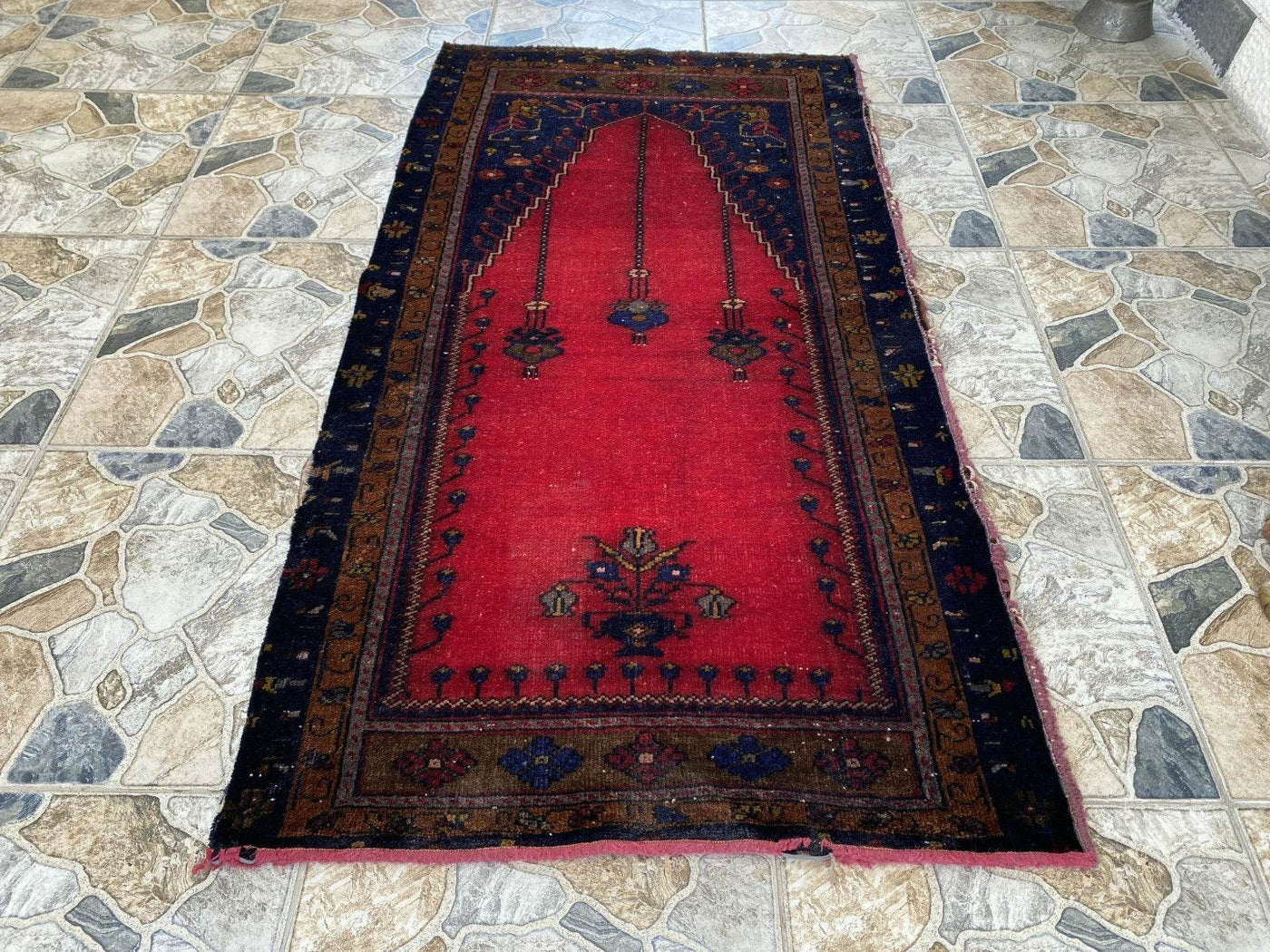 Vintage Turkish rug, Hand-knotted wool, Anatolian rug, Small area rug, Faded rug, Pastel colors, Distressed decor, Bohemian rug, Minimalist style, Unique vintage.