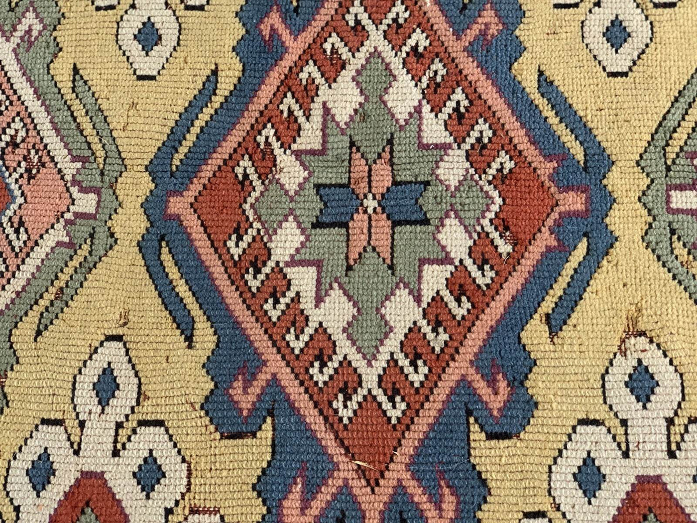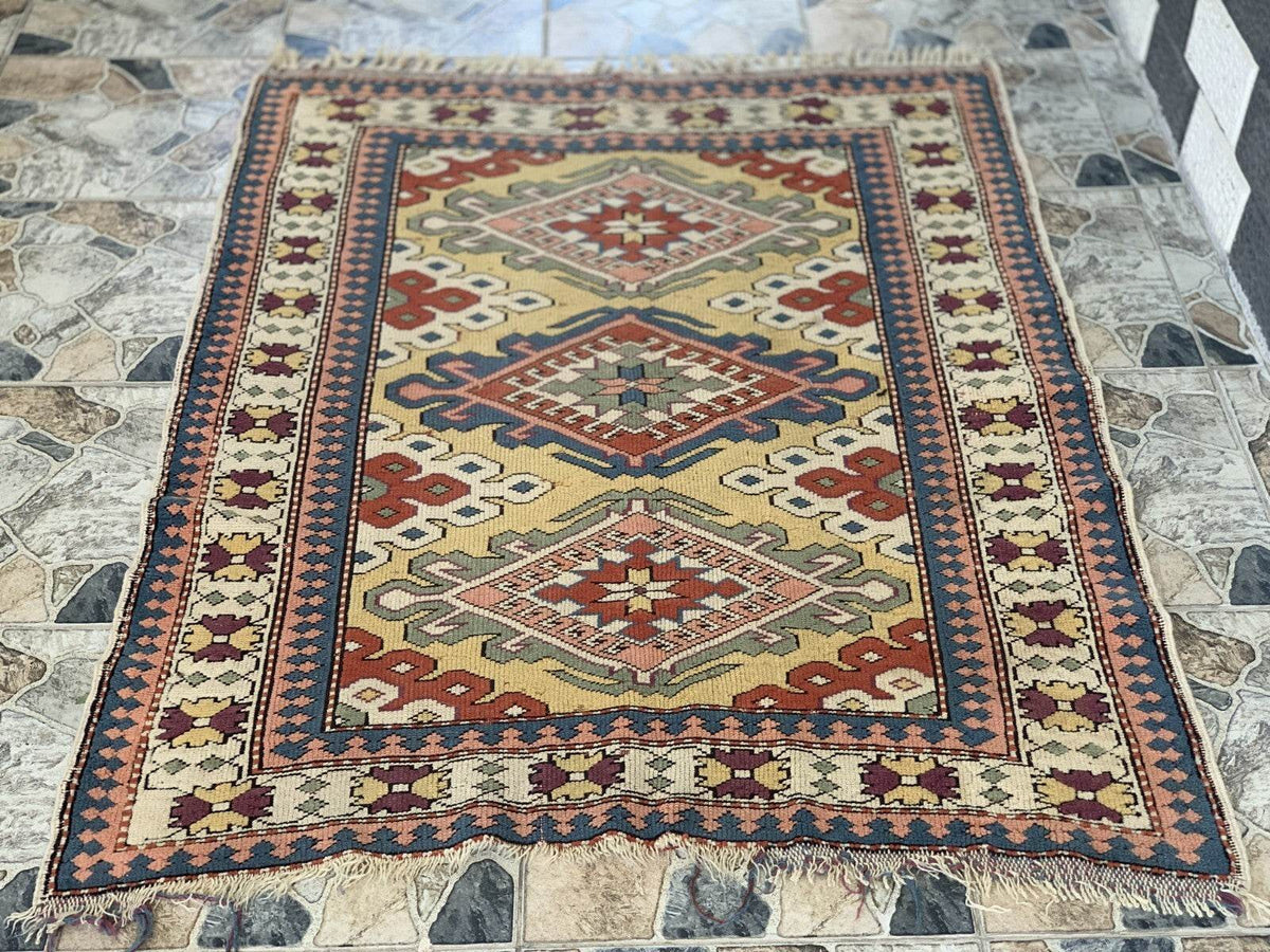 🖼️ Design & Colors: This rug features an intricate pattern with a harmonious blend of colors, including rich reds, vibrant blues, and earthy yellows. The geometric motifs and borders highlight the skilled craftsmanship and the cultural heritage of Anatolia. Each symbol tells a story, adding depth and character to any space.