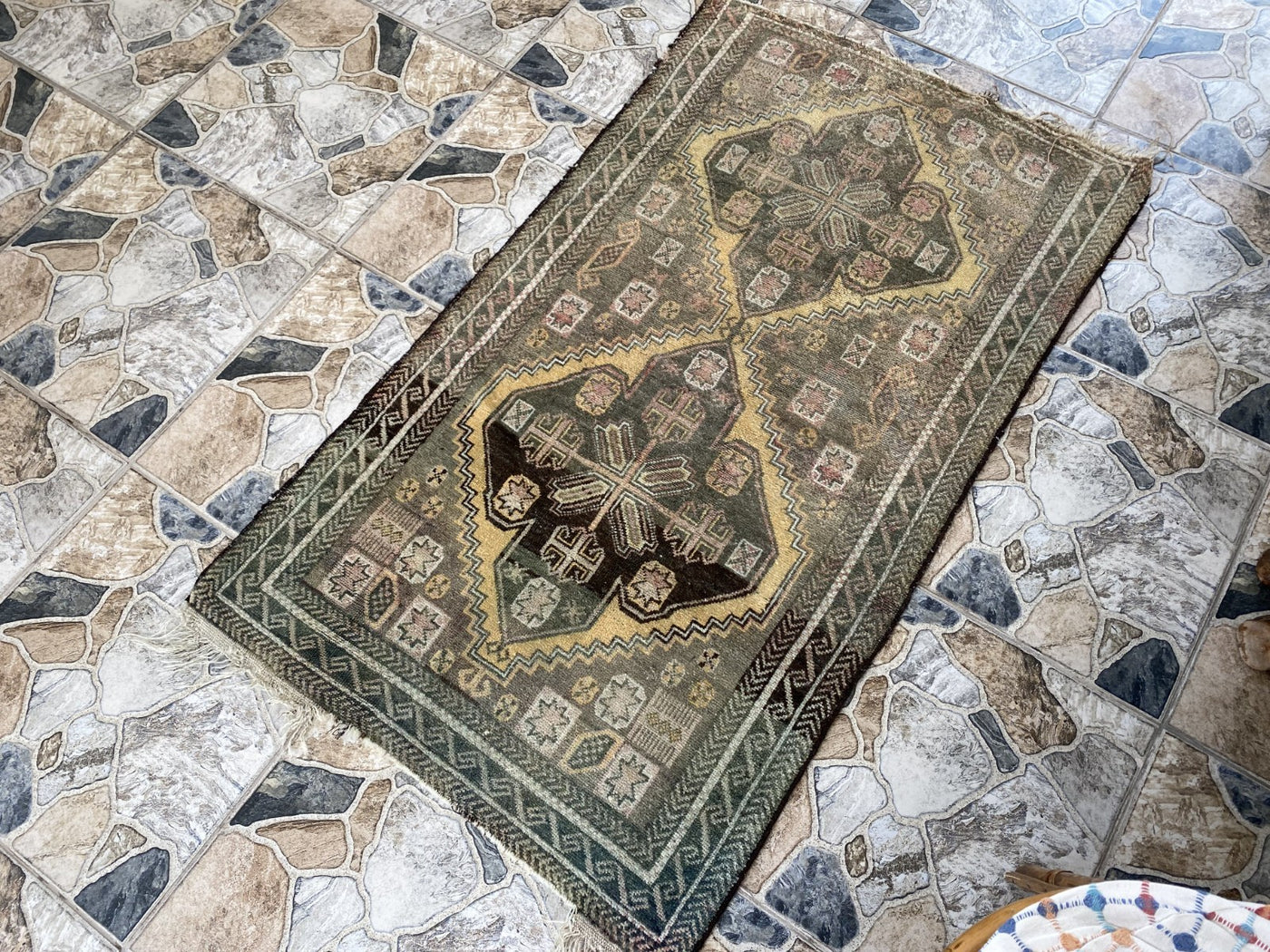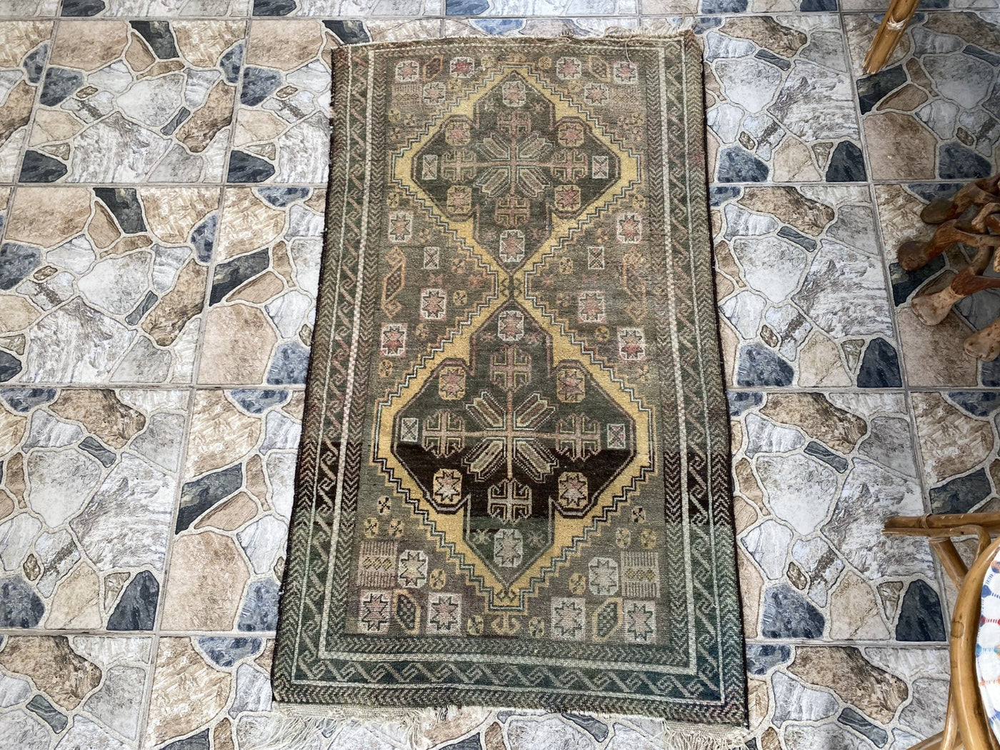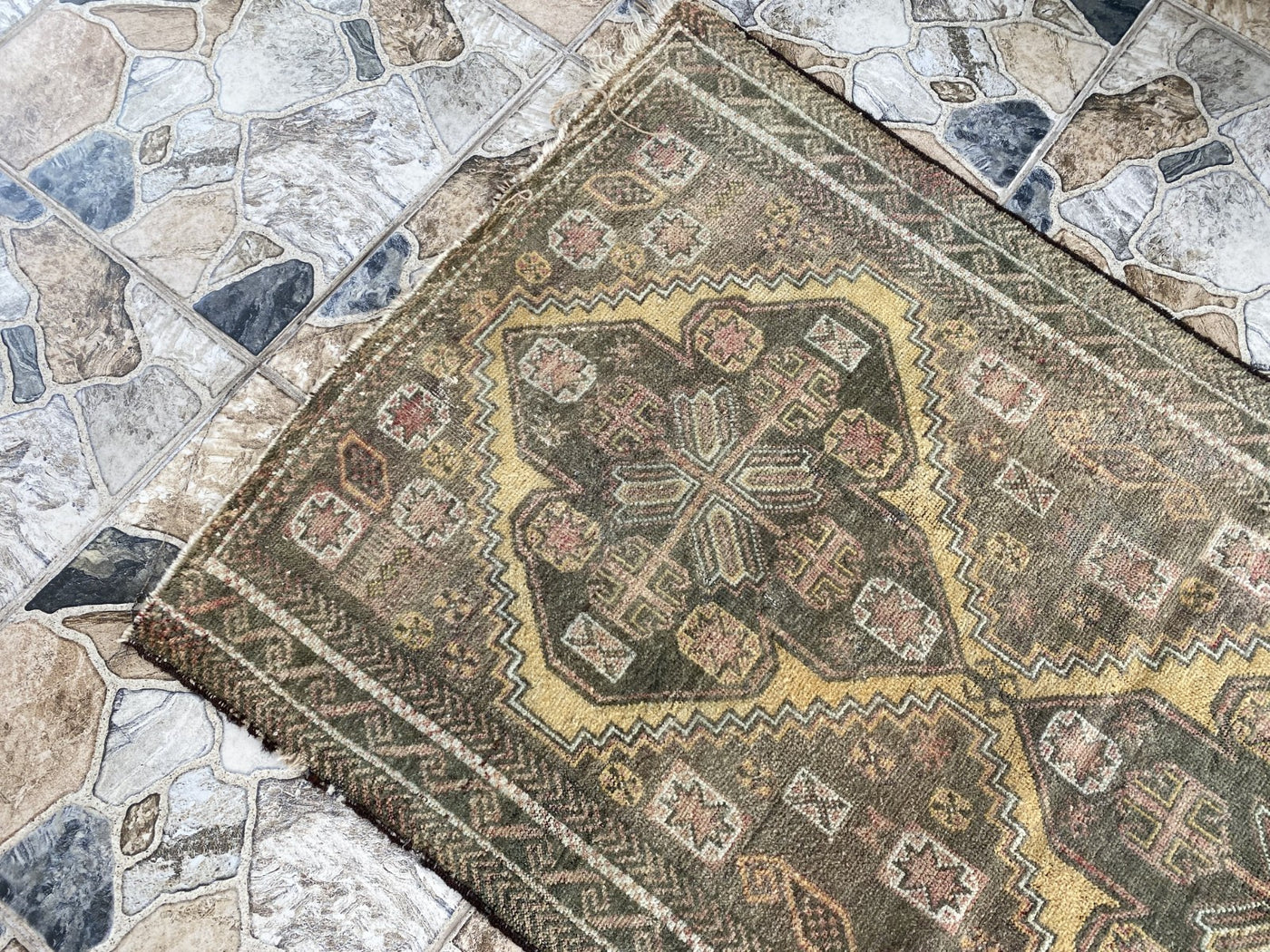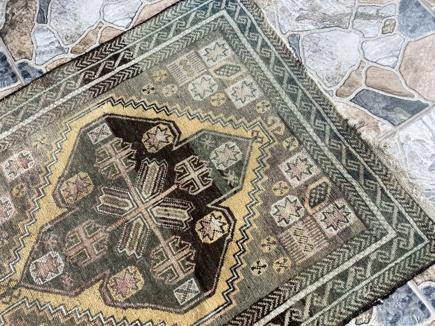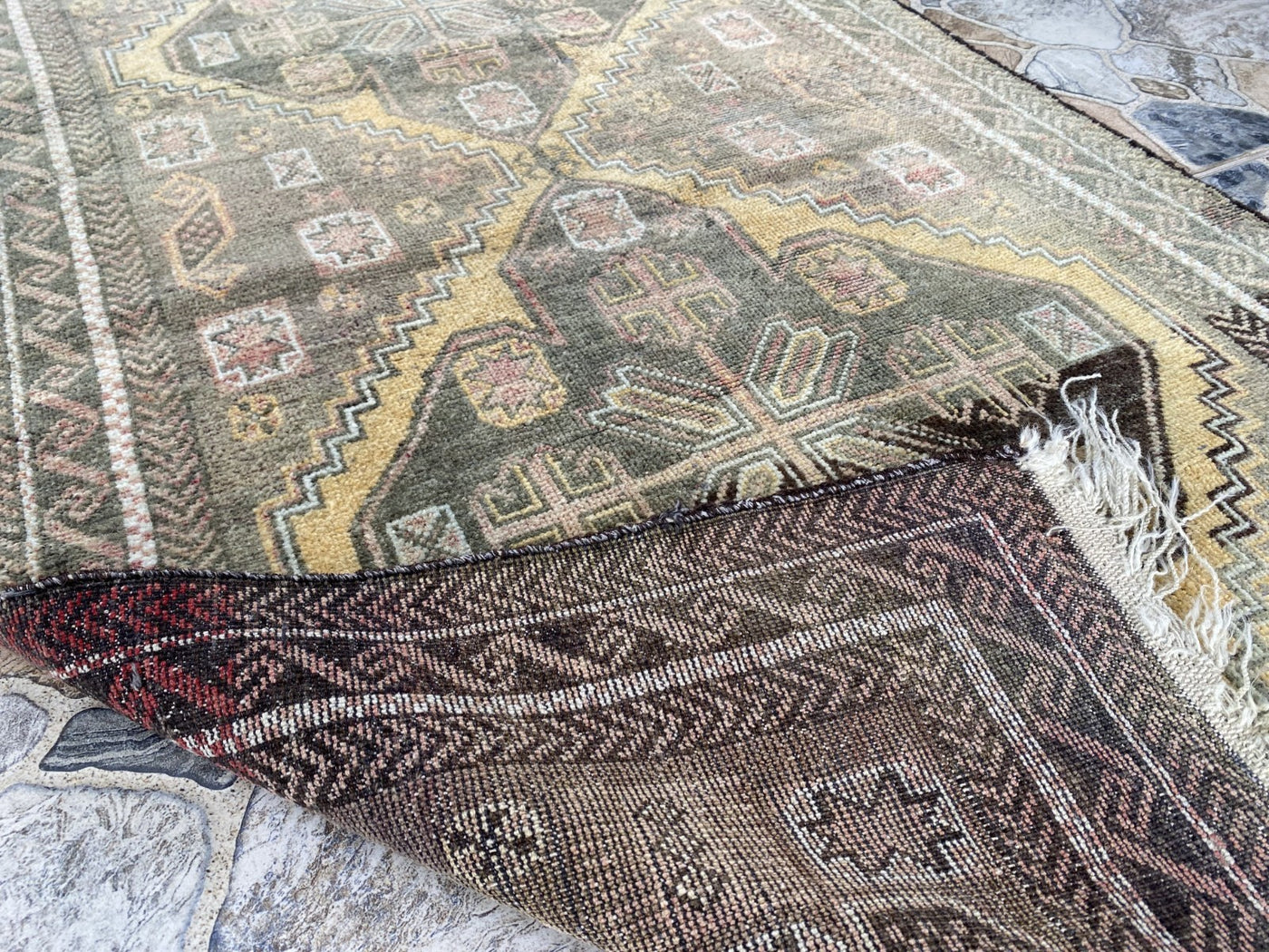 Condition: Good vintage condition, with beautiful signs of use that add to its authentic character. Professionally cleaned and ready for immediate use.To ensure its lasting beauty and structural integrity, some areas may have undergone expert repairs. We also inspect and repair fringes and edges as needed before shipping.