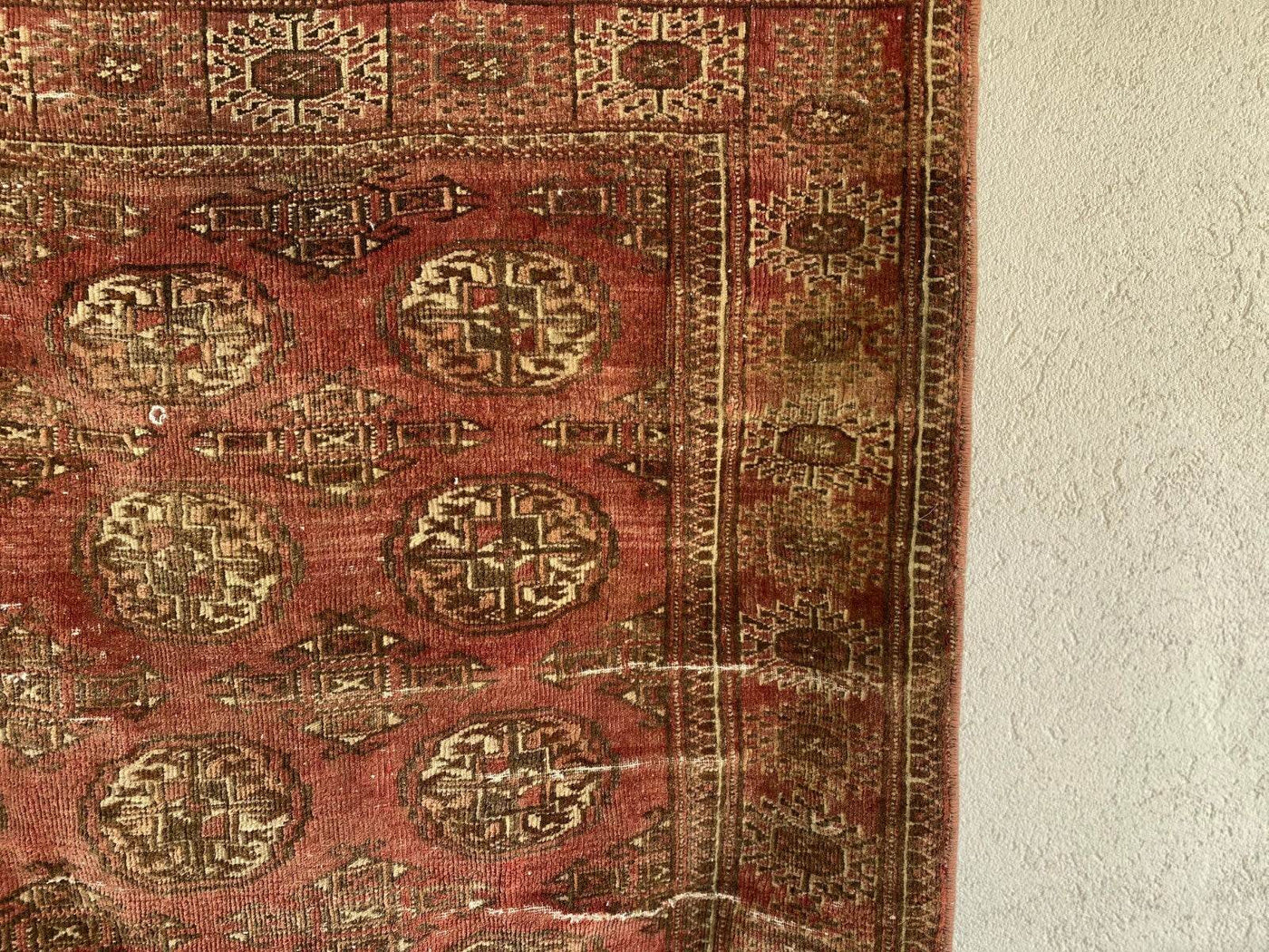 VINTAGE RUG HAND-KNOTTED Afghan Style BUKHARA handmade wool RED antique farmhouse rug