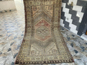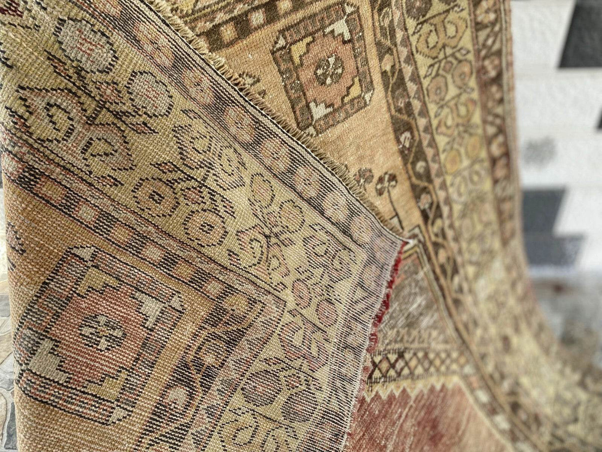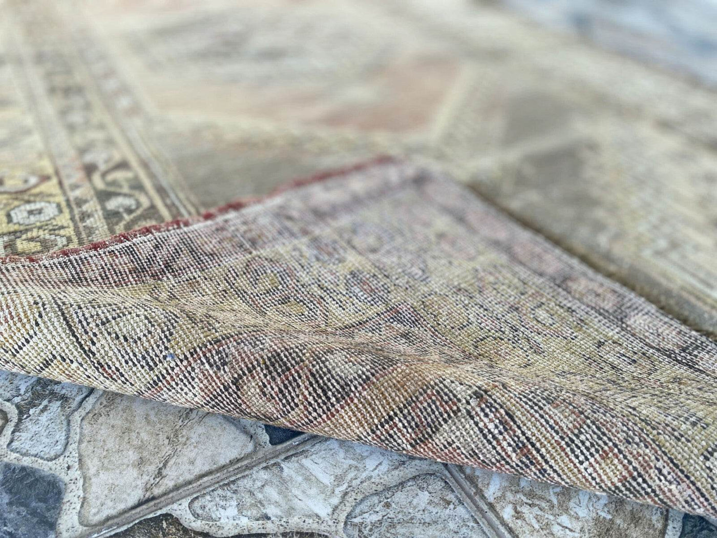 Over the years, the rug's naturally aged colors have developed a beautiful patina, enhancing its antique charm. Subtle wear patterns and soft fading from use further highlight its vintage character, making it a one-of-a-kind piece that exudes authenticity and elegance.