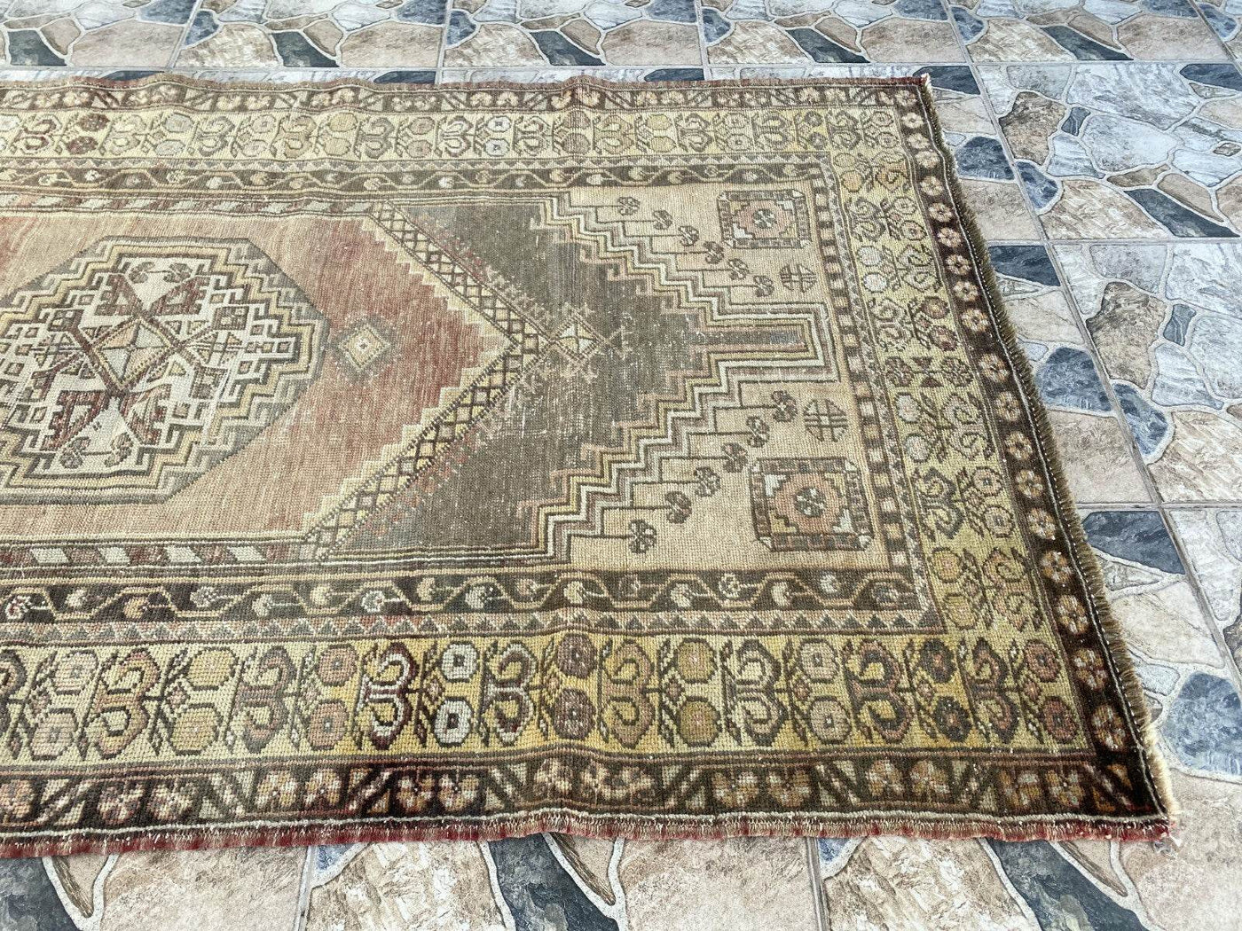 This versatile rug, with its dimensions of 3.3 x 6.3 ft (100 x 192 cm), is perfect for spaces like entryways, living rooms, or cozy reading corners. Its durable wool construction ensures longevity, while its timeless design adds warmth, history, and a tribal touch to any home décor.
