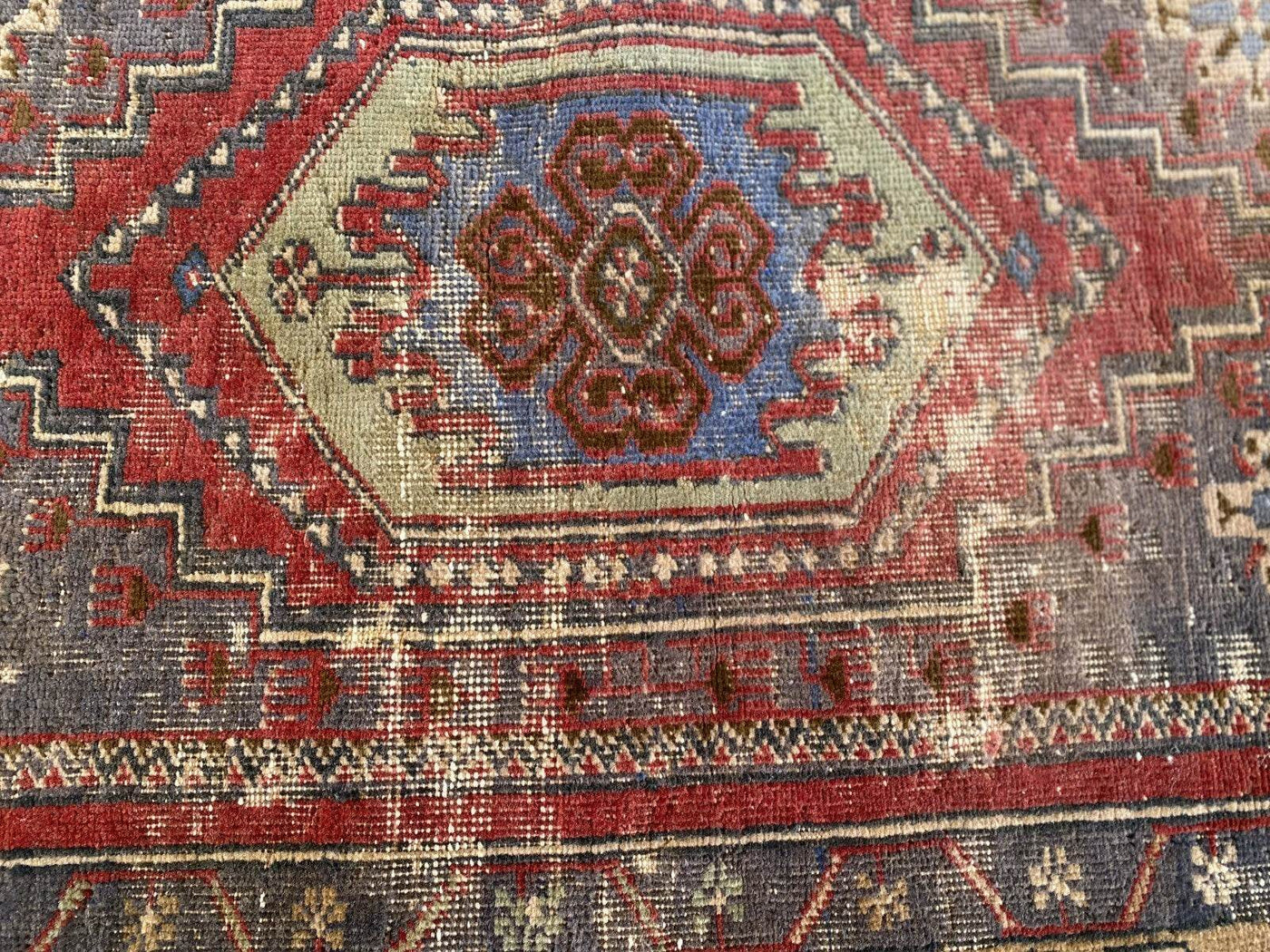 Over the years, this rug has developed a natural patina, showcasing wear and character that only time can provide. Small repairs have been made to preserve its beauty and structural integrity, ensuring it remains both durable and decorative.