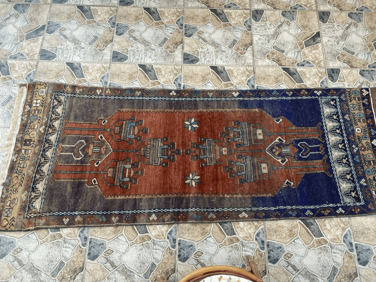 Regularly vacuum your handmade vintage rug and keep it out of direct sunlight. For spills, gently blot with a damp cloth; avoid harsh chemicals and machine washing. Professional cleaning is recommended.
