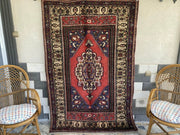 Vintage Turkish Rug | 132 x 198 cm | Handmade Wool Rug | Red & Navy Medallion Design