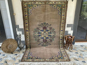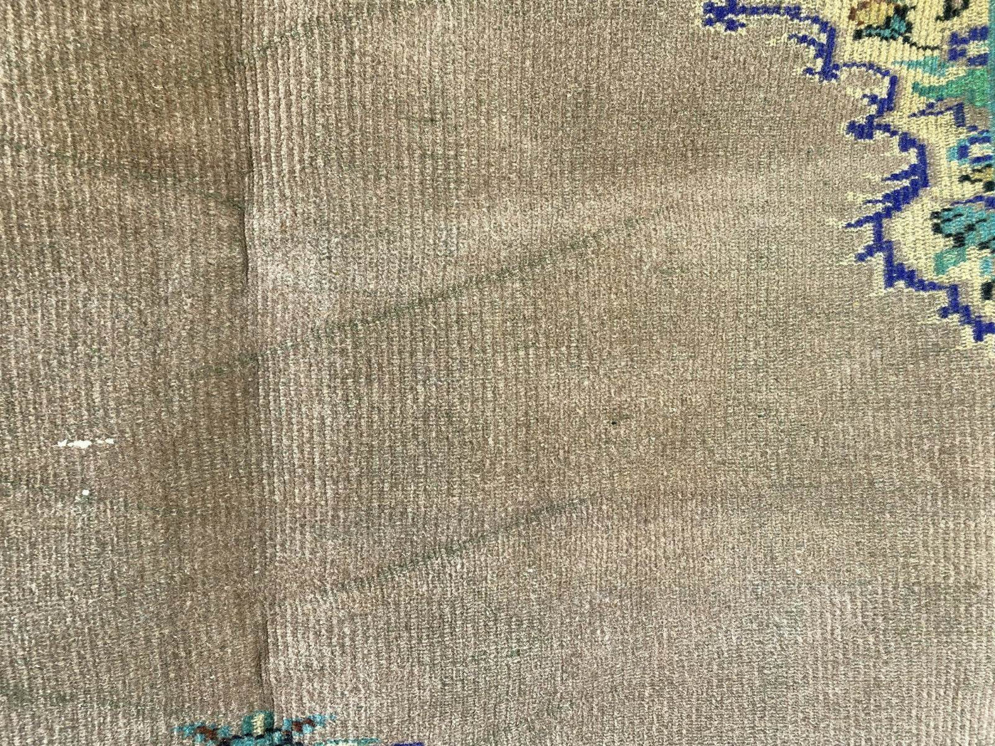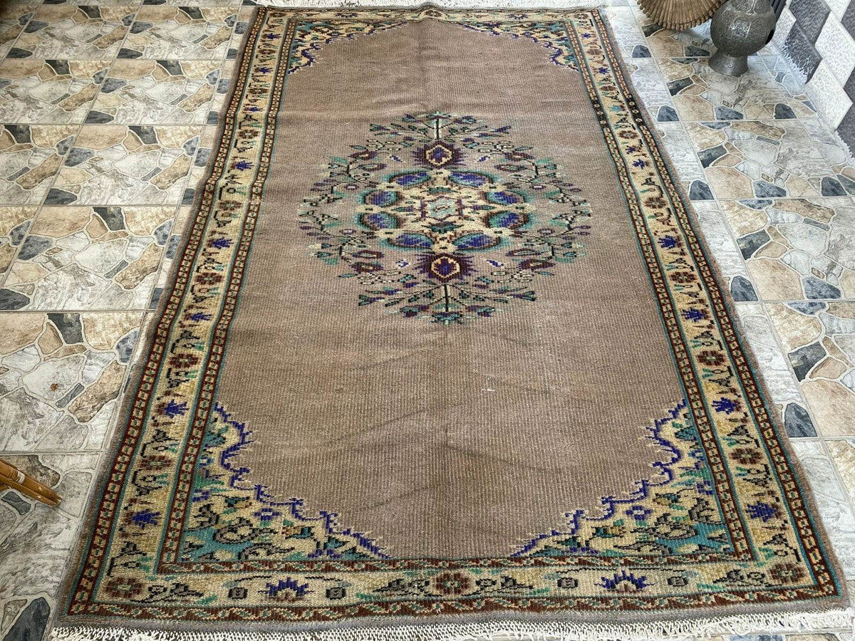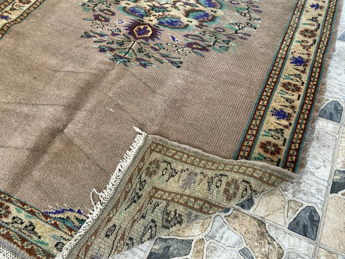 🔑 Tags / Keywords: Vintage Turkish rug, Hand-knotted wool, Anatolian rug, Area rug, Faded rug, Pastel colors, Floral medallion, Shabby-chic decor, Bohemian rug, Large rug, Unique vintage.