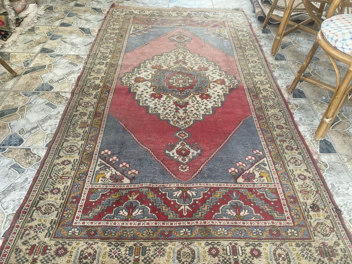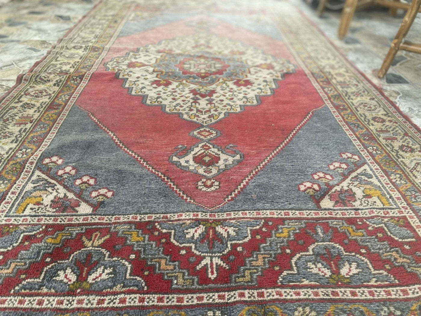 Measuring 127 x 242 cm (4.1 x 7.9 ft), this vintage Oushak rug is perfect for any room, adding both comfort and historical charm. The high-quality wool ensures durability, making it not only a decorative piece but a functional part of your home. This rug is a true testament to the timeless appeal of Turkish textiles, blending traditional design with modern style effortlessly.