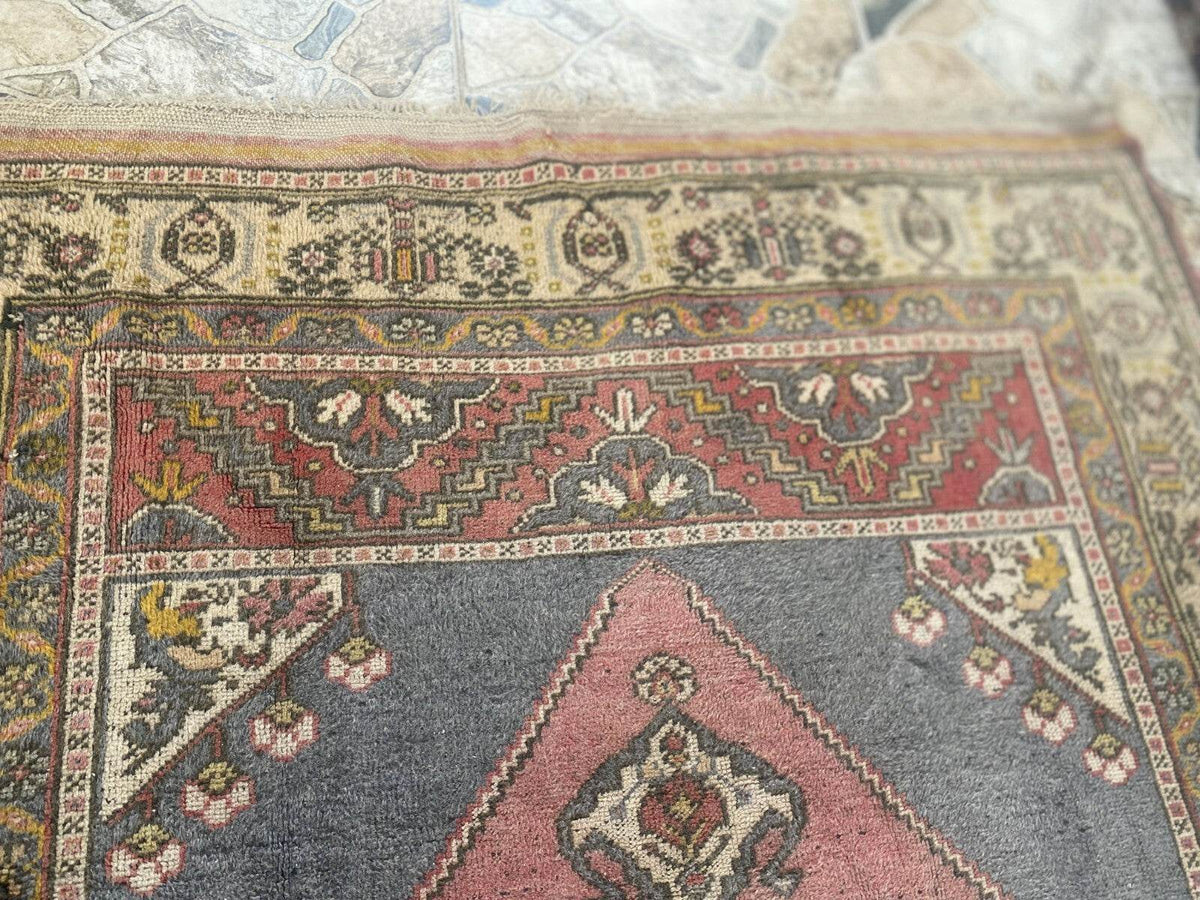 The central medallion, a hallmark of Turkish rug design, is intricately woven with floral and geometric patterns, symbolizing protection and balance. Surrounding this are angular motifs and vibrant borders, featuring stylized flowers and vines, which represent growth, prosperity, and fertility—key symbols in Turkish village life. These designs are deeply rooted in Anatolian culture, where each motif carries cultural significance, often passed down through generations of artisans.