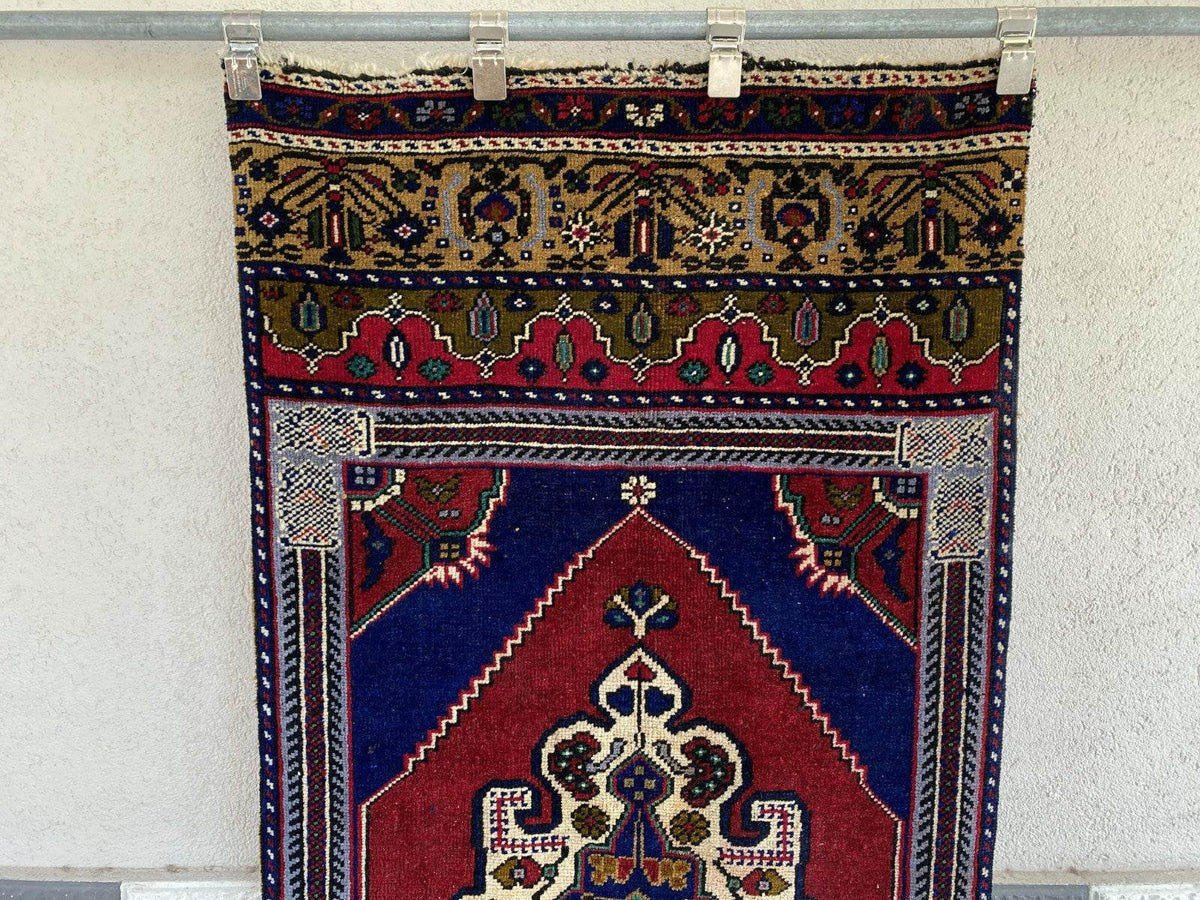 🔑 Tags / Keywords: Vintage runner rug, Hand-knotted wool, Anatolian rug, Distressed carpet, Antique, Restoration project, Hallway rug, Faded colors, Bohemian, Rustic decor, Geometric.