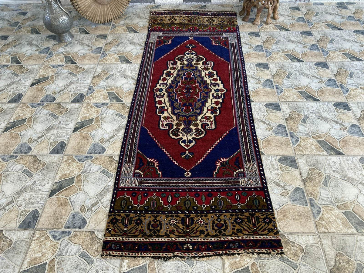 Vintage Turkish Runner Rug | 2.7 x 7.5 ft Hand-Knotted Wool Antique Ha – Oushak Loom - Vintage Turkish Rugs