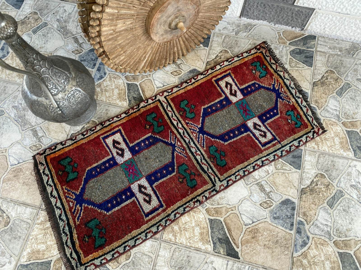 Vintage Turkish Tribal Rug | 1.6 x 3.4 ft | Handmade Wool Anatolian Small Carpet