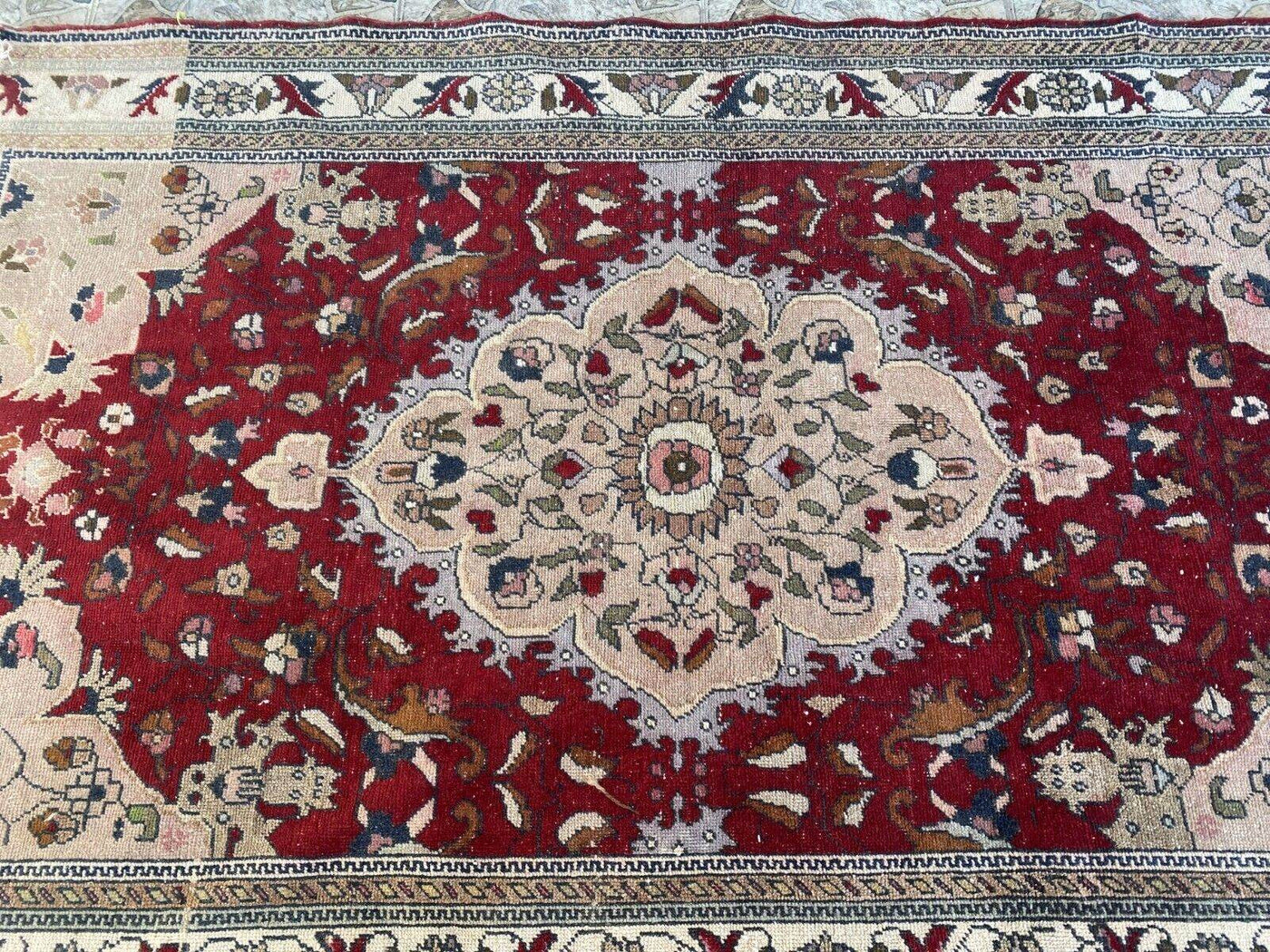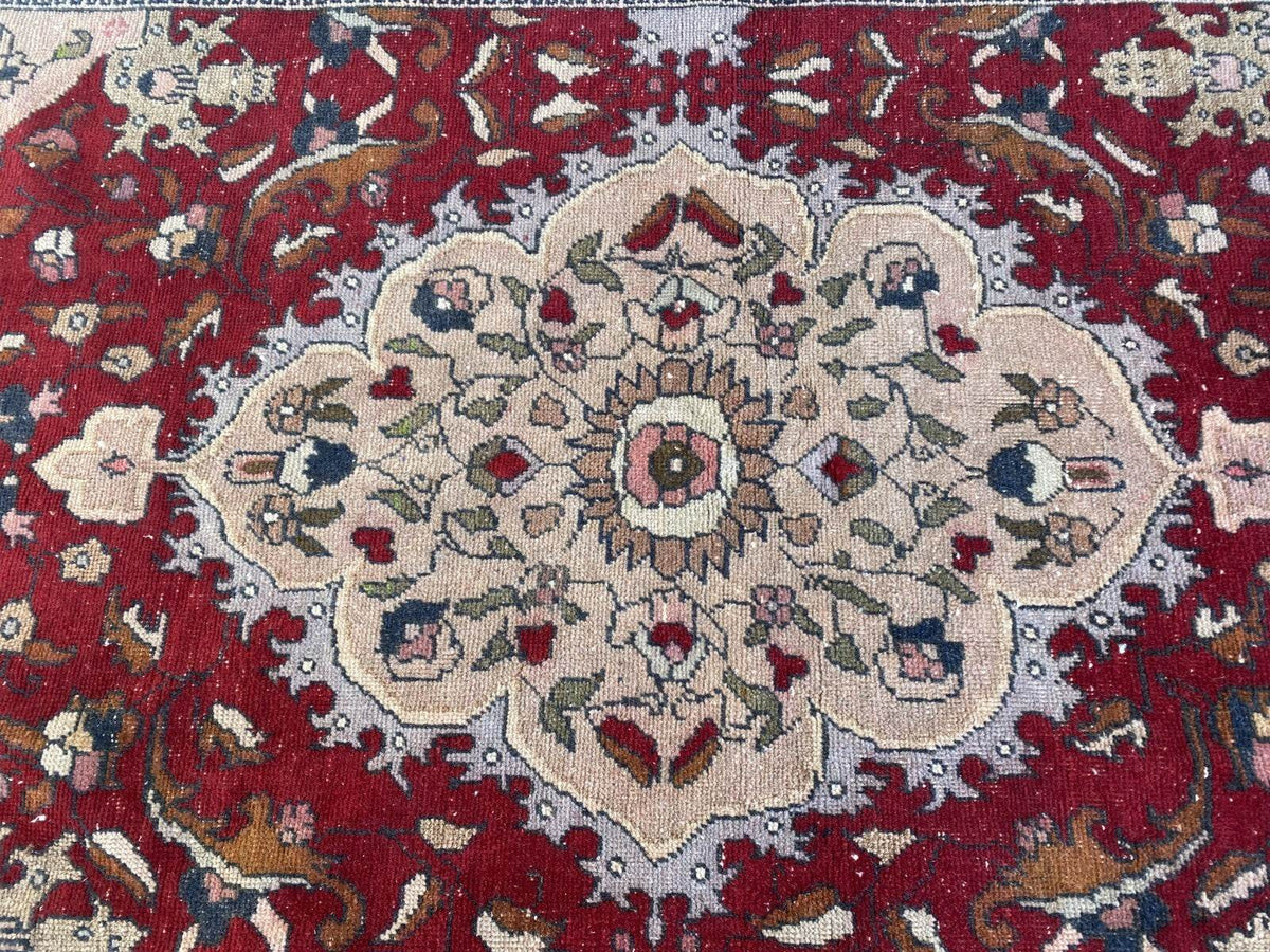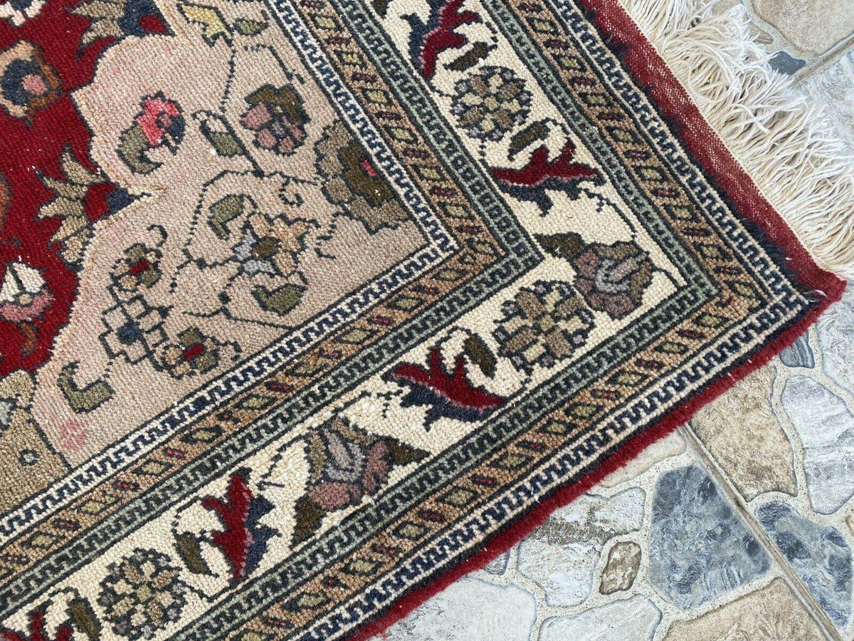 Keywords: Turkish Vintage Rug, Oushak Handmade Carpet, Antique Red Wool Rug, Bohemian Floral Rug, Hand-Knotted Anatolian Rug, Oriental Medallion Rug, Rustic Farmhouse Home Decor 🏡✨