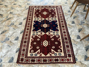 Vintage Turkish Wool Rug, Hand-Knotted Antique Red Oushak Anatolian 1980s 3x6
