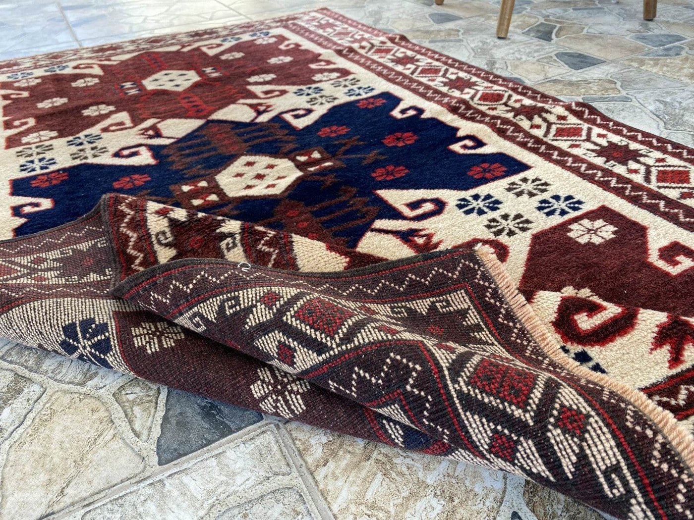 Regularly vacuum your handmade vintage rug and keep it out of direct sunlight. For spills, gently blot with a damp cloth; avoid harsh chemicals and machine washing. Professional cleaning is recommended.